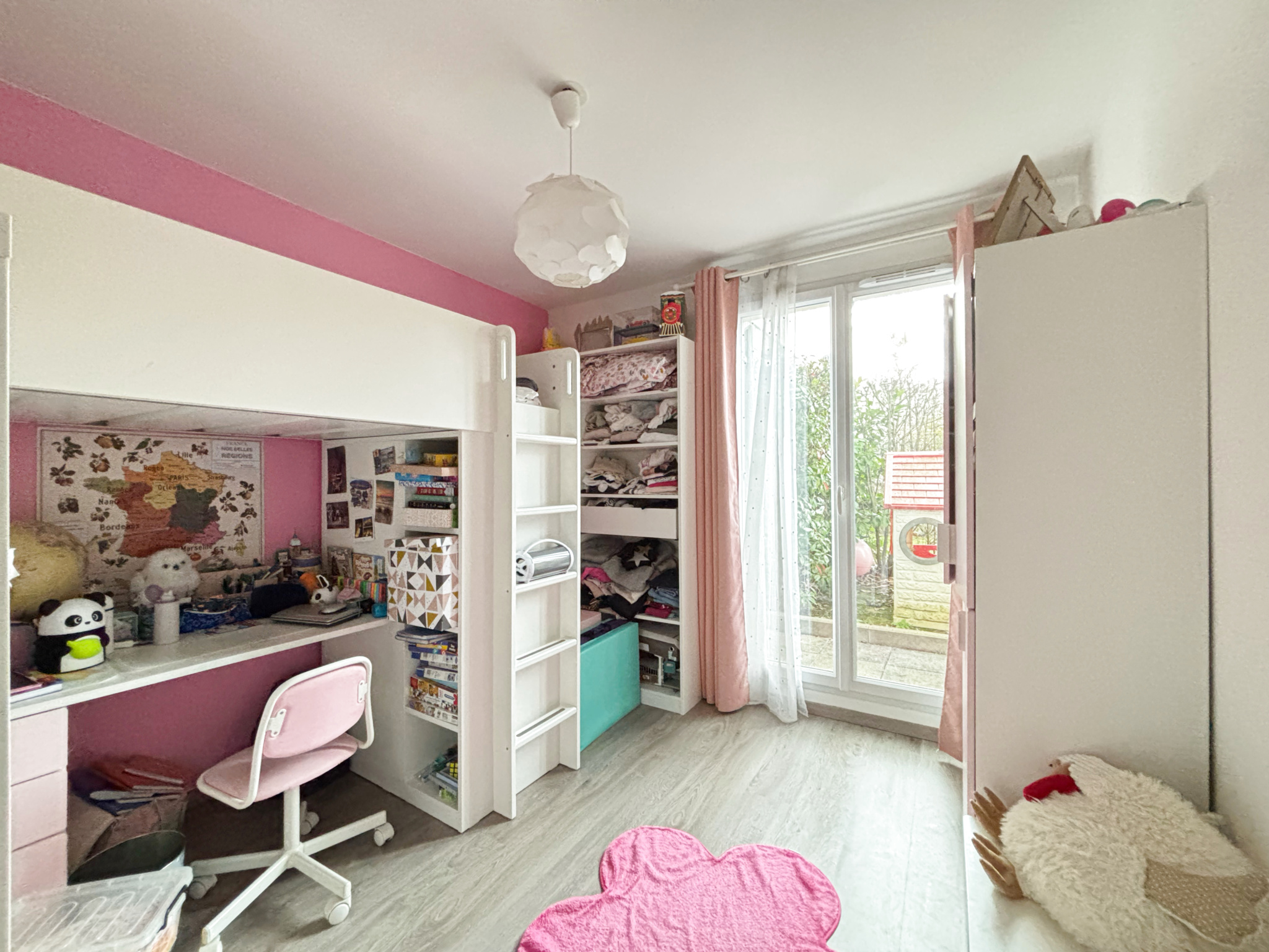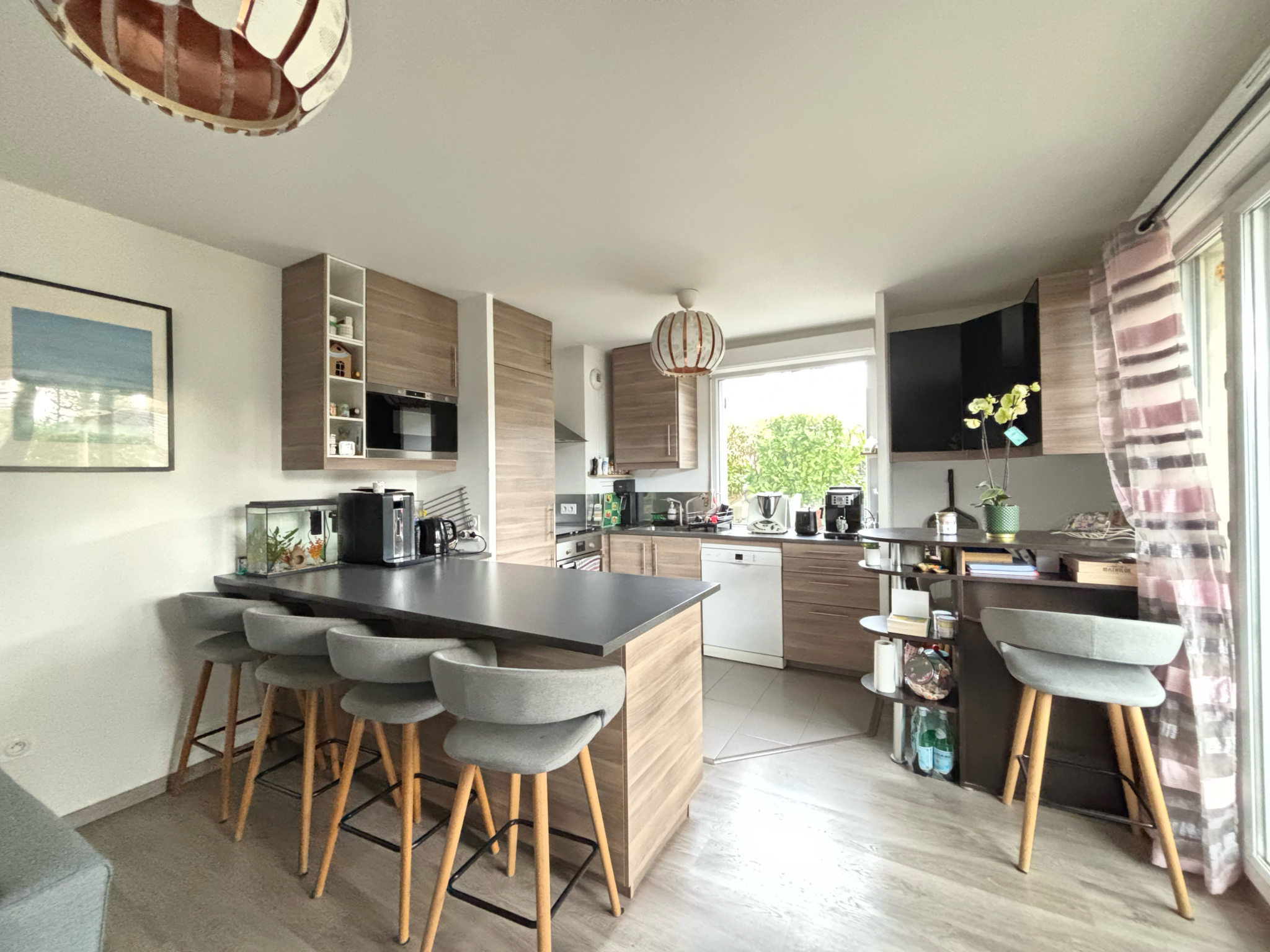 Il se compose d'une vaste entrée, d'une belle pièce de vie lumineuse avec cuisine ouverte, donnant accès à une terrasse prolongée par un magnifique jardin privatif d'environ 135 m2. L'espace nuit offre trois belles chambres, toutes ouvertes sur le jardin, dont une suite parentale avec salle d'eau et WC privatifs, ainsi qu'une buanderie, une seconde salle de bains et un WC indépendant. Il est également possible d'agrandir le séjour en supprimant l'une des chambres selon vos besoins.
