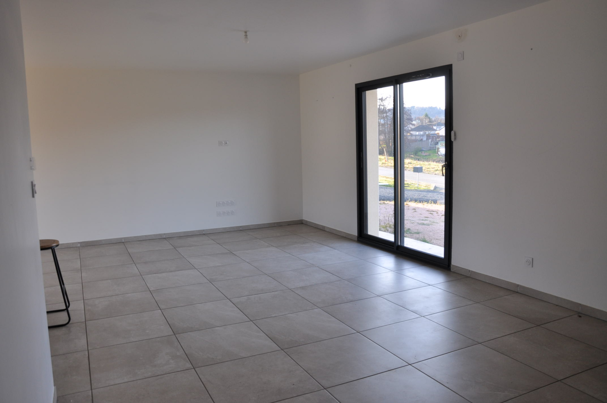 LE MAYET-DE-MONTAGNE Quartier Résidentiel, très belle maison neuve de 2023, de plain-pied, comprenant une agréable pièce de vie de 48 m2 avec un grand placard d'entrée et une belle cuisine aménagée et équipée (meubles et électroménager neufs), un salon-salle à manger avec baies vitrées offrant une lumière traversante, un couloir desservant deux chambres de 10 m2, une salle de bain avec baignoire et douche, un WC indépendant, et une suite parentale avec une chambre de 15,50 m2, une salle d'eau et un dressing.