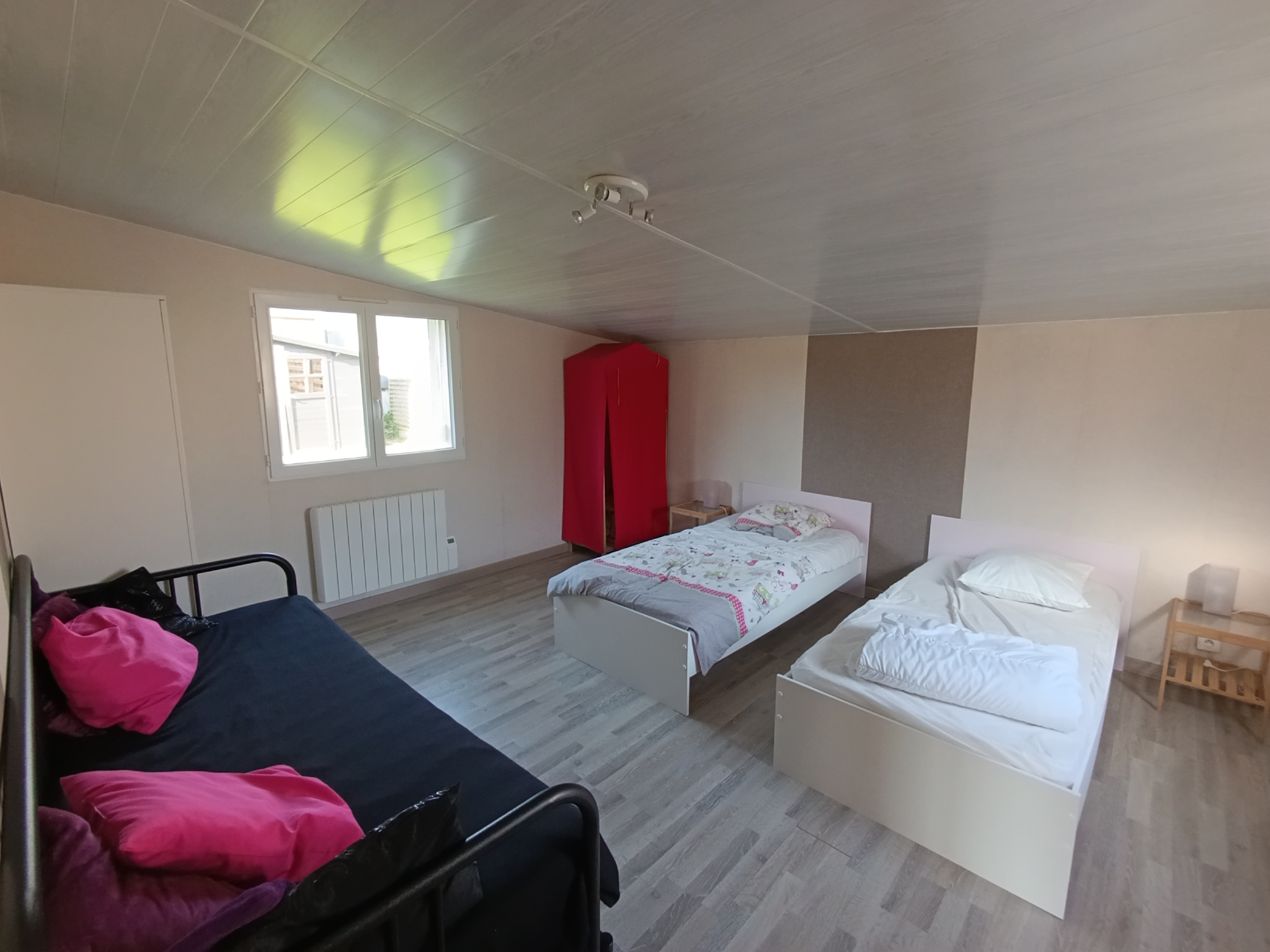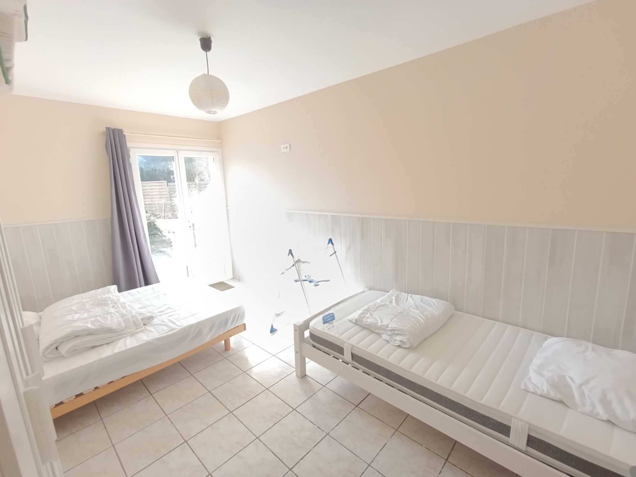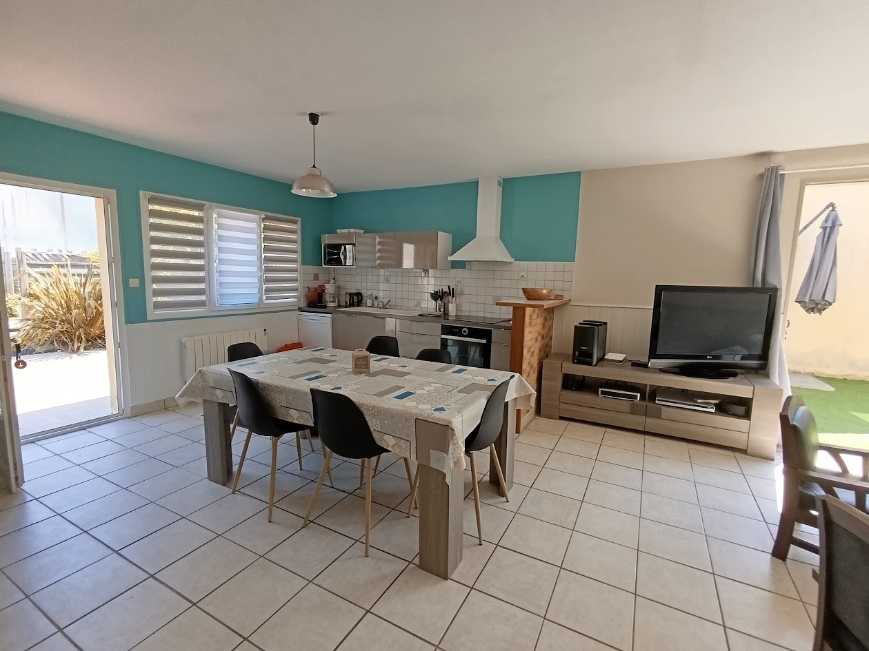 Vaste de Salon/Séjour lumineux avec cuisine ouverte, 3 belles chambres, une salle d'eau avec WC, un cellier. Une belle parcelle d'environ 420m2 bien proportionnée.
