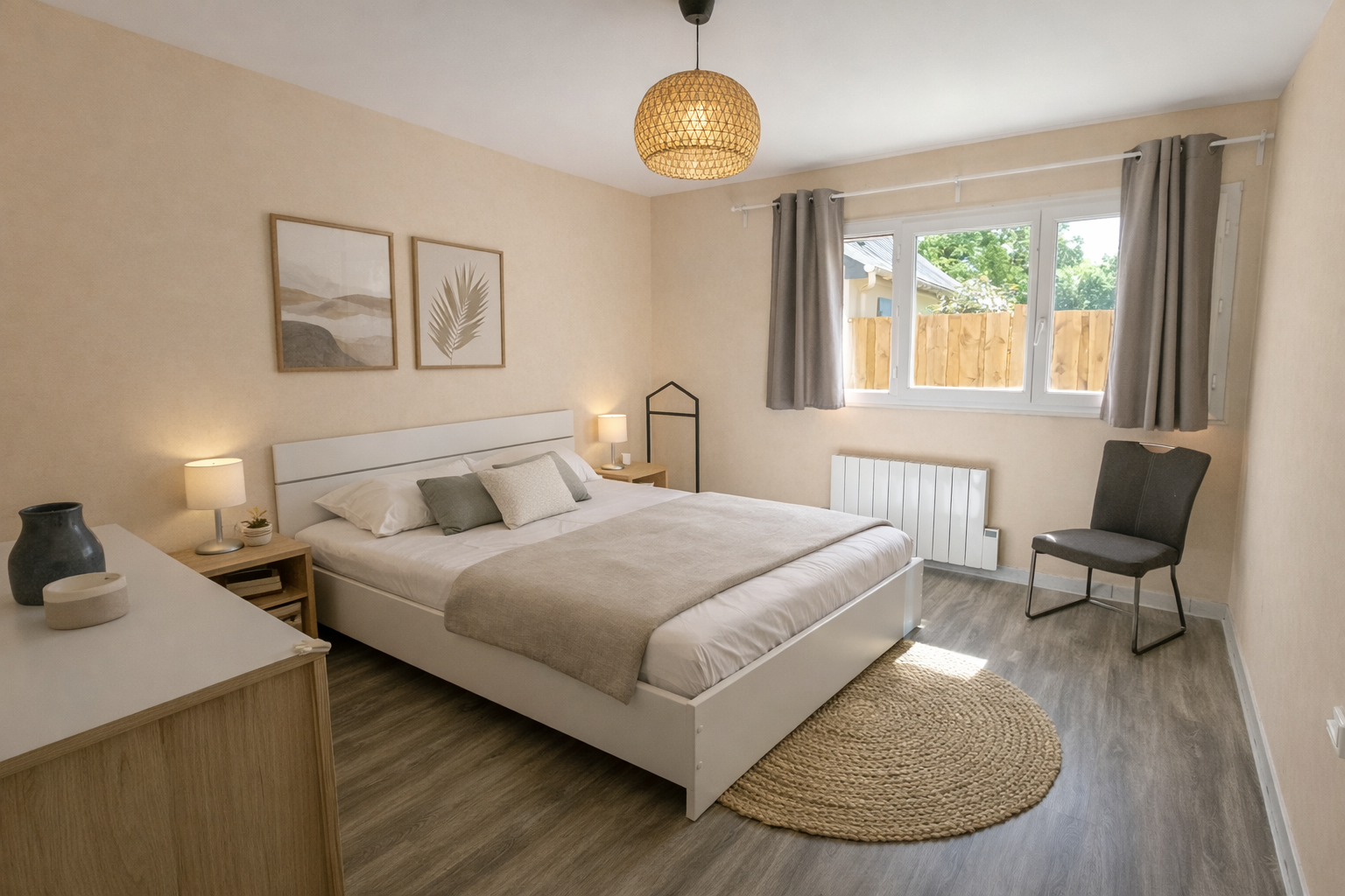 Pour les photos intérieurs, une sur deux sont génrées par l'IA vous permettant de vous projeter avec une autre décoration.