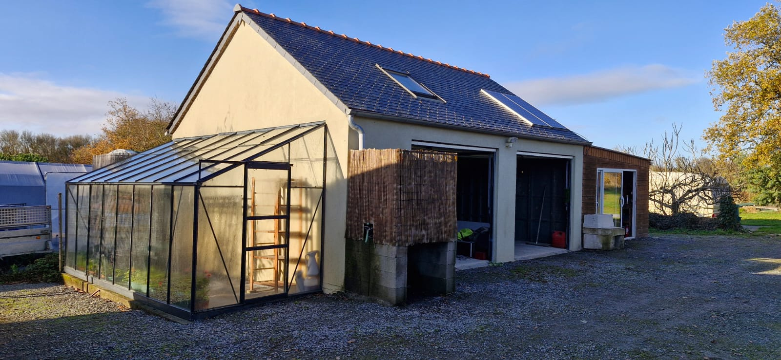Un double garage, diverses dépendances et locaux de stockage complètent le bien. Possibilité d'acquérir le matériel utilisé pour le maraichage.