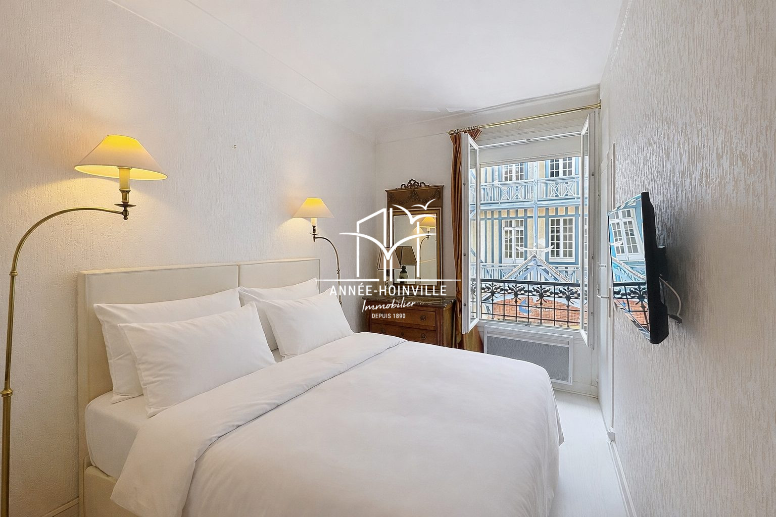 ANNÉE-HOINVILLE IMMOBILIER vous présente, dans le triangle d'or de Deauville, à seulement quelques pas de l'hôtel Normandy et de la Plage, découvrez cet élégant appartement situé dans une résidence de standing avec ascenseur, avec de superbes hauteurs sous plafond. Cet appartement allie charme d'antan et confort moderne.