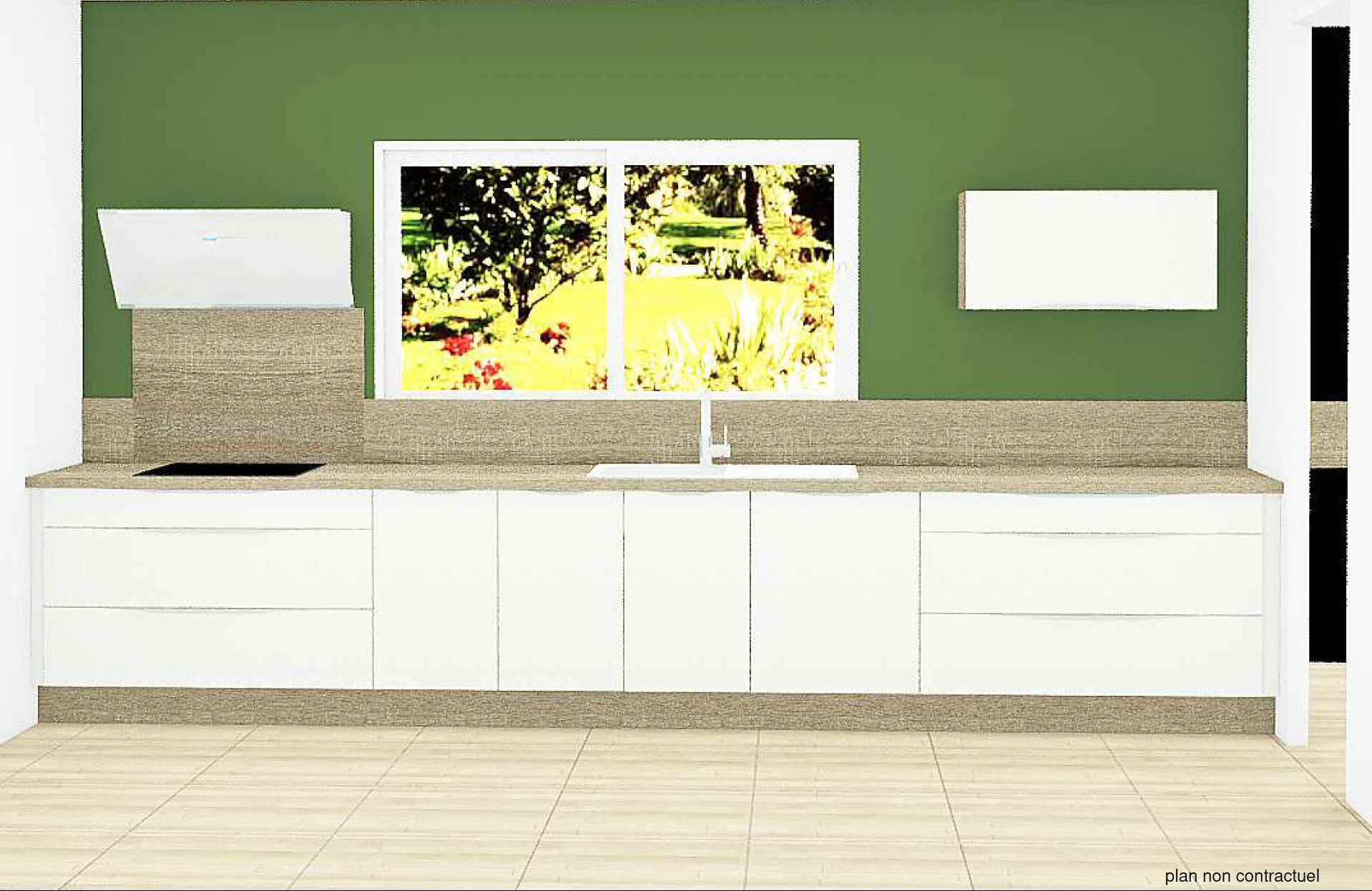 ? Une belle pièce de vie de 40 m2 avec une cuisine aménagée-équipée signée Cuisinella, alliant design et fonctionnalité.