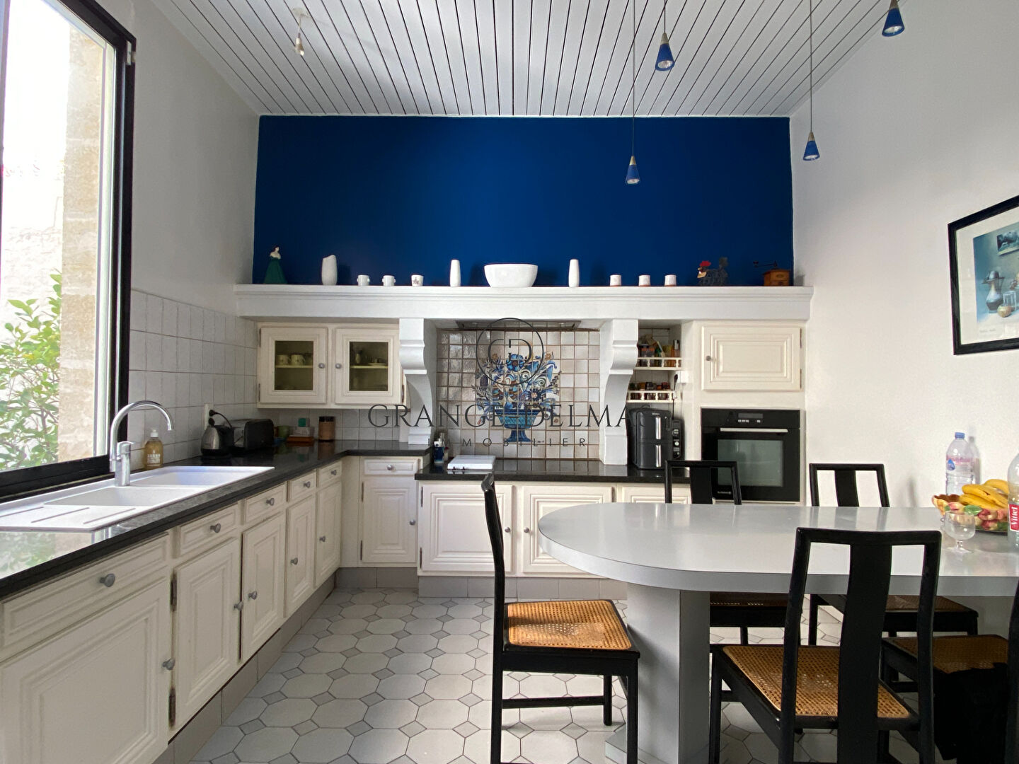 Au rez-de-chaussée, un magnifique hall d' entrée avec mosaïques distribue les belles pièces de réception aux prestations anciennes avec parquet, cheminée, et belle hauteur sous plafond et une pièce bureau. Une grande cuisine dinatoire ouvre sur une cour qui permet de stationner 2 voitures.