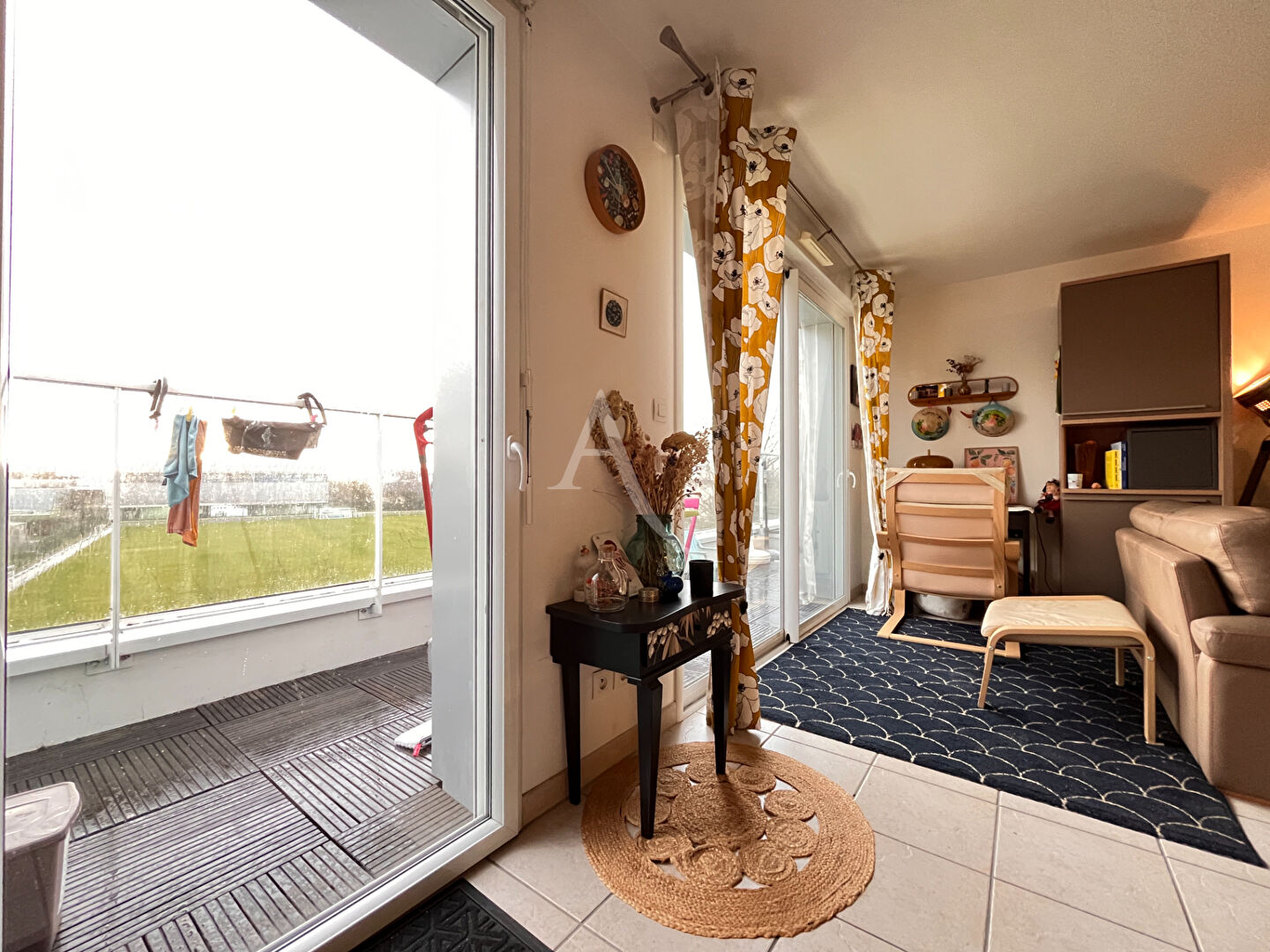 Le véritable atout de ce bien réside dans son exceptionnelle terrasse d'environ 50 m², qui entoure l'appartement et est accessible depuis toutes les pièces principales. Un espace extérieur rare, propice aux moments de détente, aux repas en plein air ou simplement au plaisir de profiter d'une vue dégagée, en toute tranquillité.