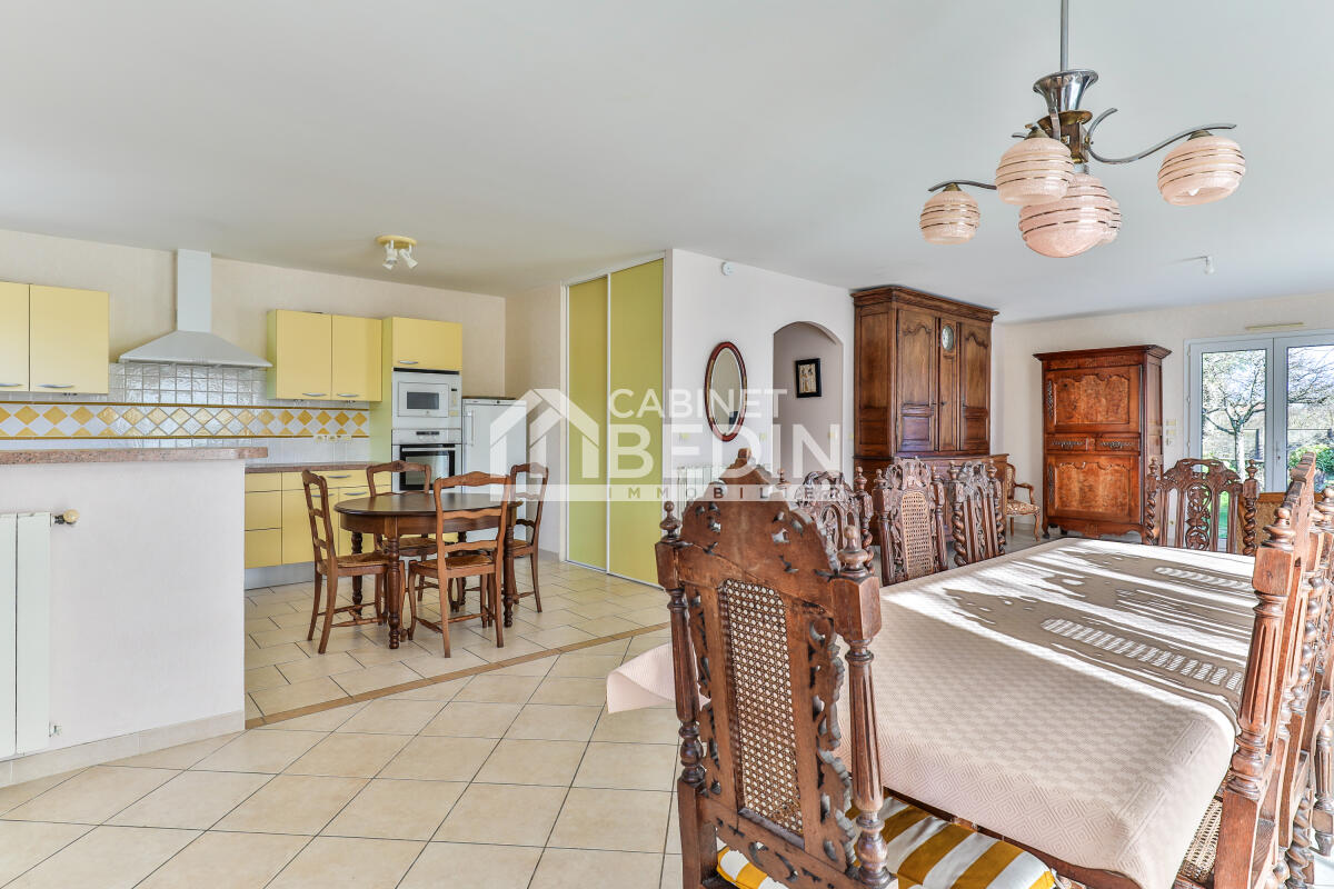 Exclusivité CABINET BEDIN - GUJAN-MESTRAS. Idéalement située dans le quartier recherché de la gare, à proximité immédiate des commerces, des ports et de l?ensemble des commodités, cette maison contemporaine de plain-pied, en parfait état, saura vous séduire par ses volumes et sa luminosité. Le porche d'entrée dessert un vaste salon-séjour de 50 m², baigné de lumière, ouvert sur le jardin. La maison dispose d?une grande cuisine entièrement équipée, ainsi que d?une buanderie, offrant un confort de vie optimal. L?espace nuit, bien distinct, se compose de quatre chambres lumineuses, toutes dotées de placards intégrés, d?une salle d?eau et d?un WC indépendant. Un garage carrelé et isolé de 24 m², attenant à la maison et équipé d?un point d?eau, vient compléter les prestations.