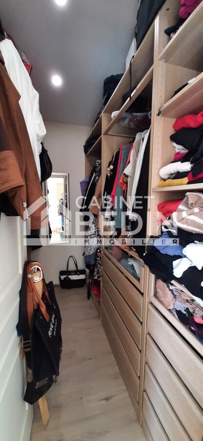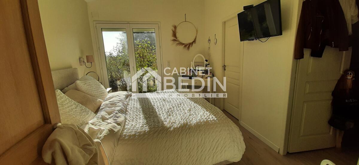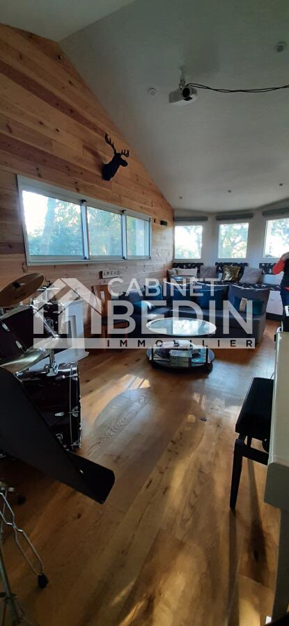 Plus de 200 m2 de plain-pied au c?ur d'un parc verdoyant de plus de 3500 m2. 5 chambres, possible 6, 2 pièces d'eau, dressing, buanderie mais aussi un espace jour de 90 m2 composé d'une cuisine équipée ouverte, d'un séjour avec baies vitrées ouvrant sur terrasse sud et d'un espace musique ou bibliothèque.