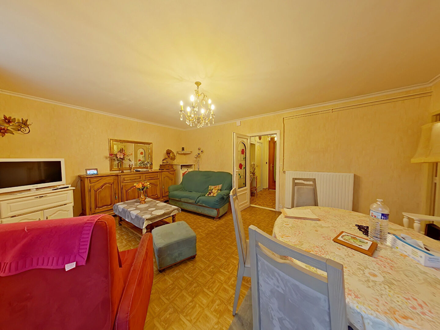 Entrée avec cellier, une cuisine indépendante aménagée et équipée de 7.03m², une pièce de vie de 24.74m² , trois chambres, une salle d'eau et un WC indépendant.