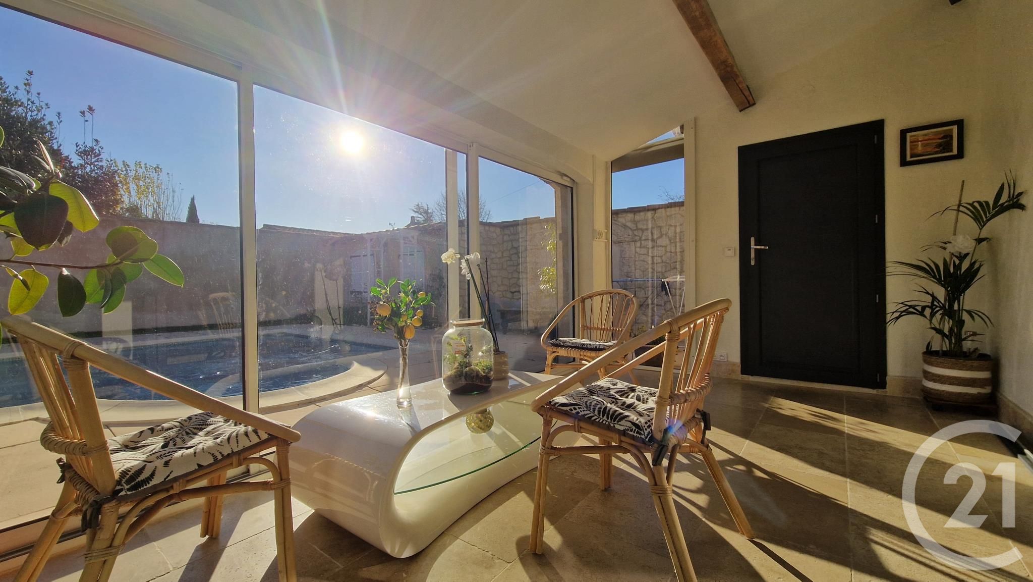 A extérieur, une véranda plein sud, une cuisine d'été et une piscine 10x4.
