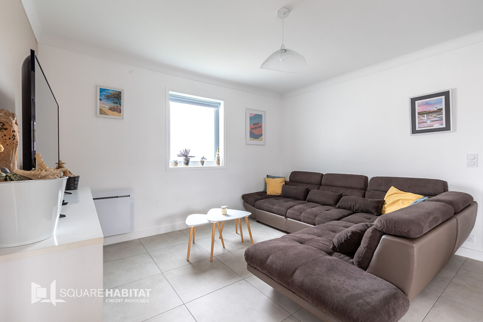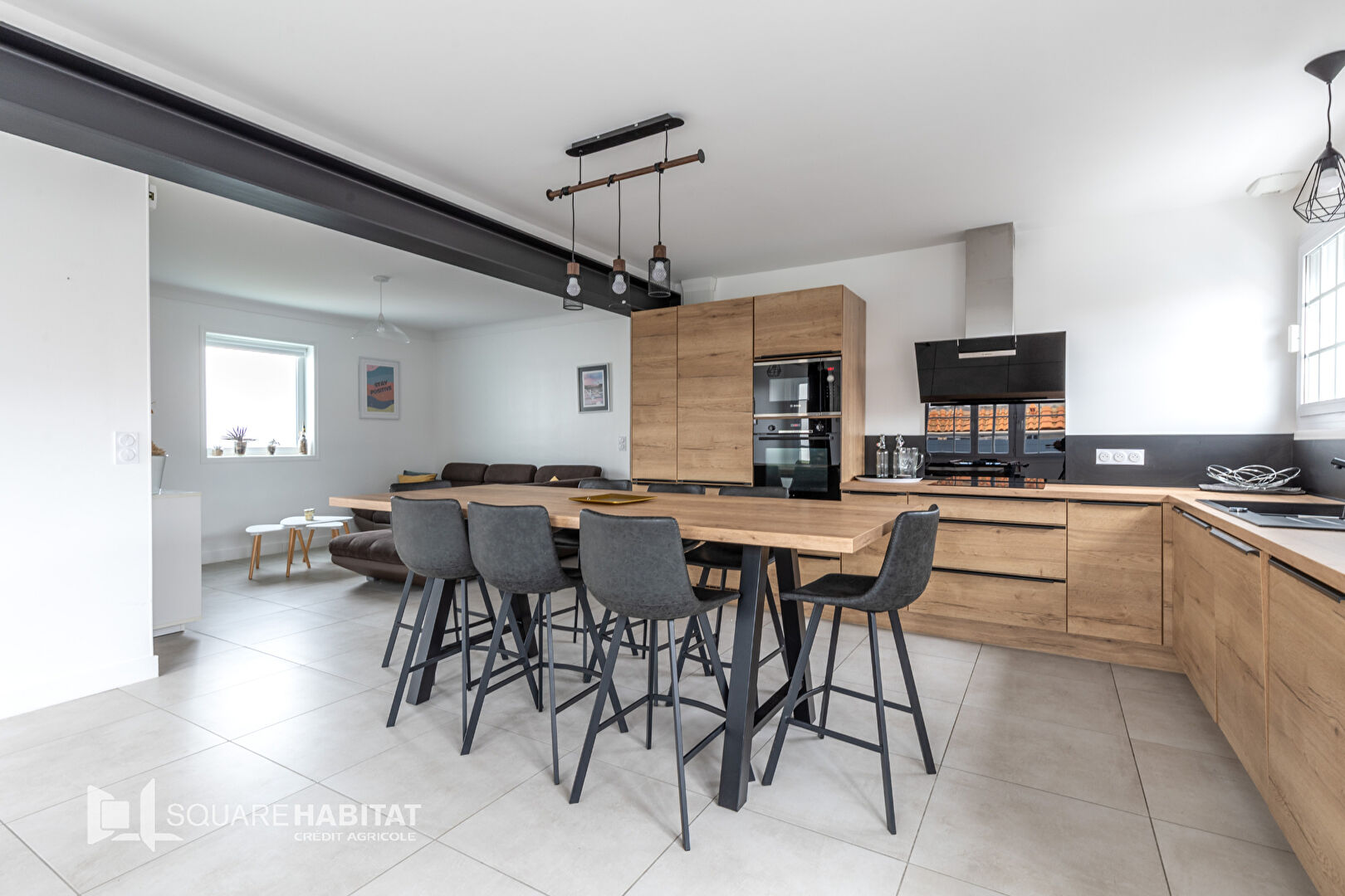 La visite commence par un double séjour avec cuisine équipée, la pièce est lumineuse et le ressenti très positif de suite.