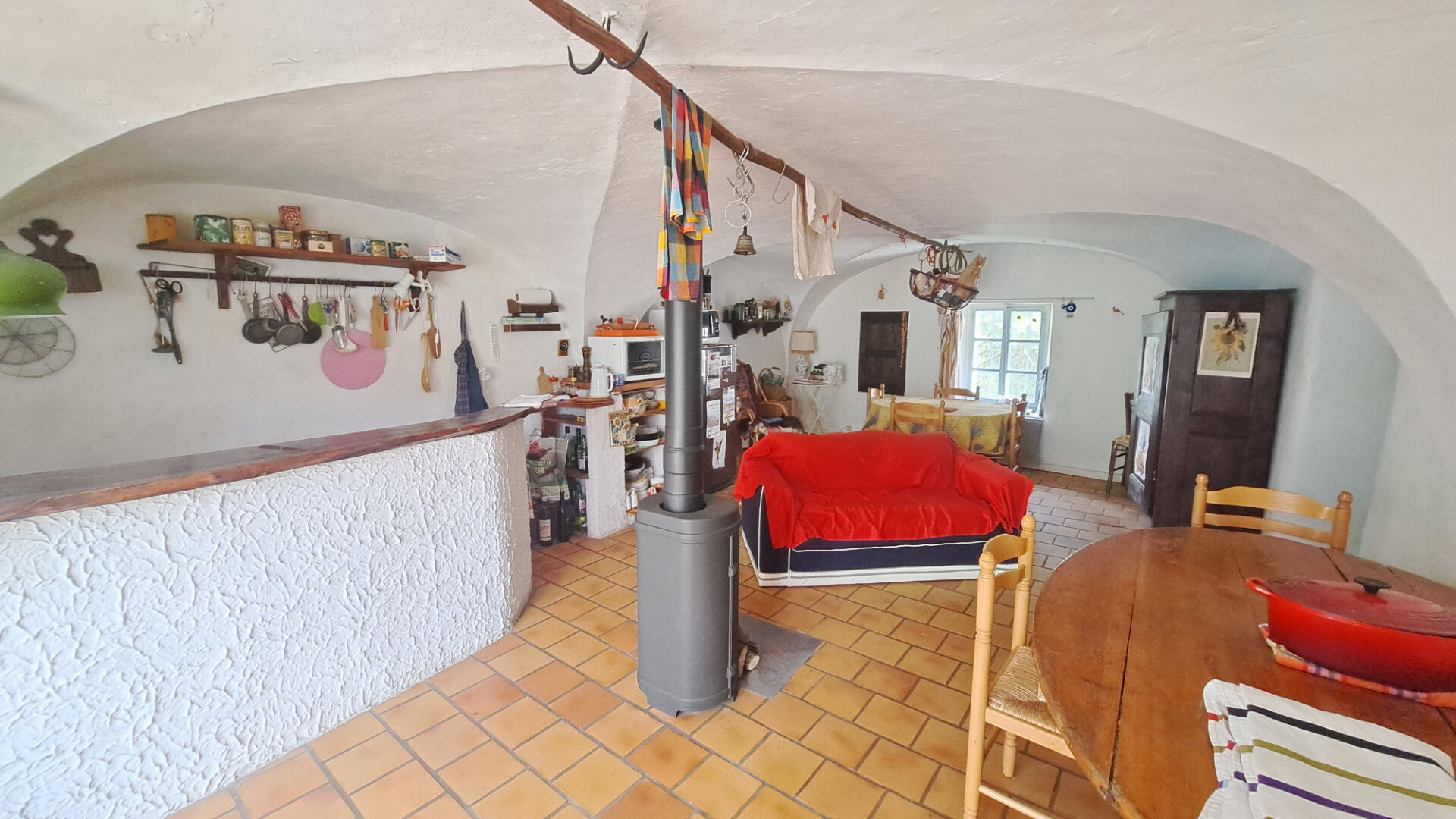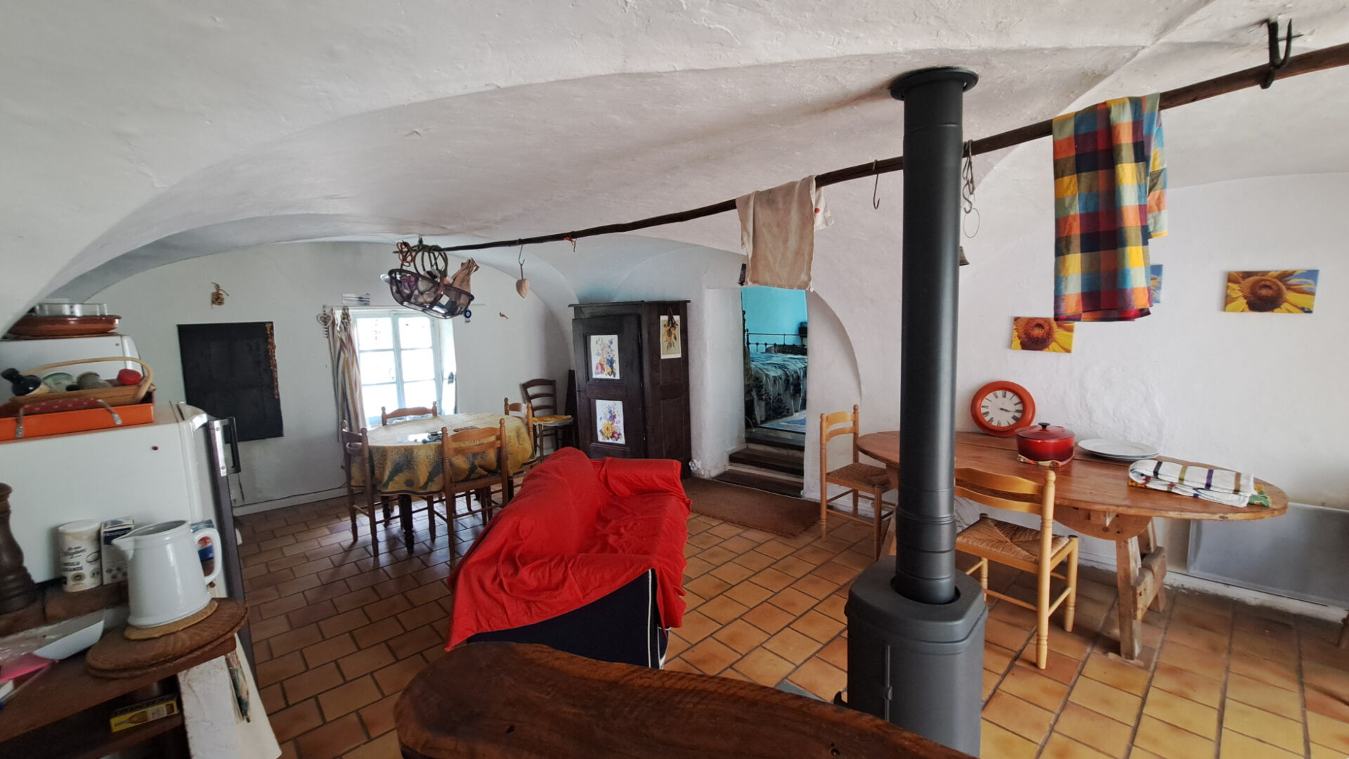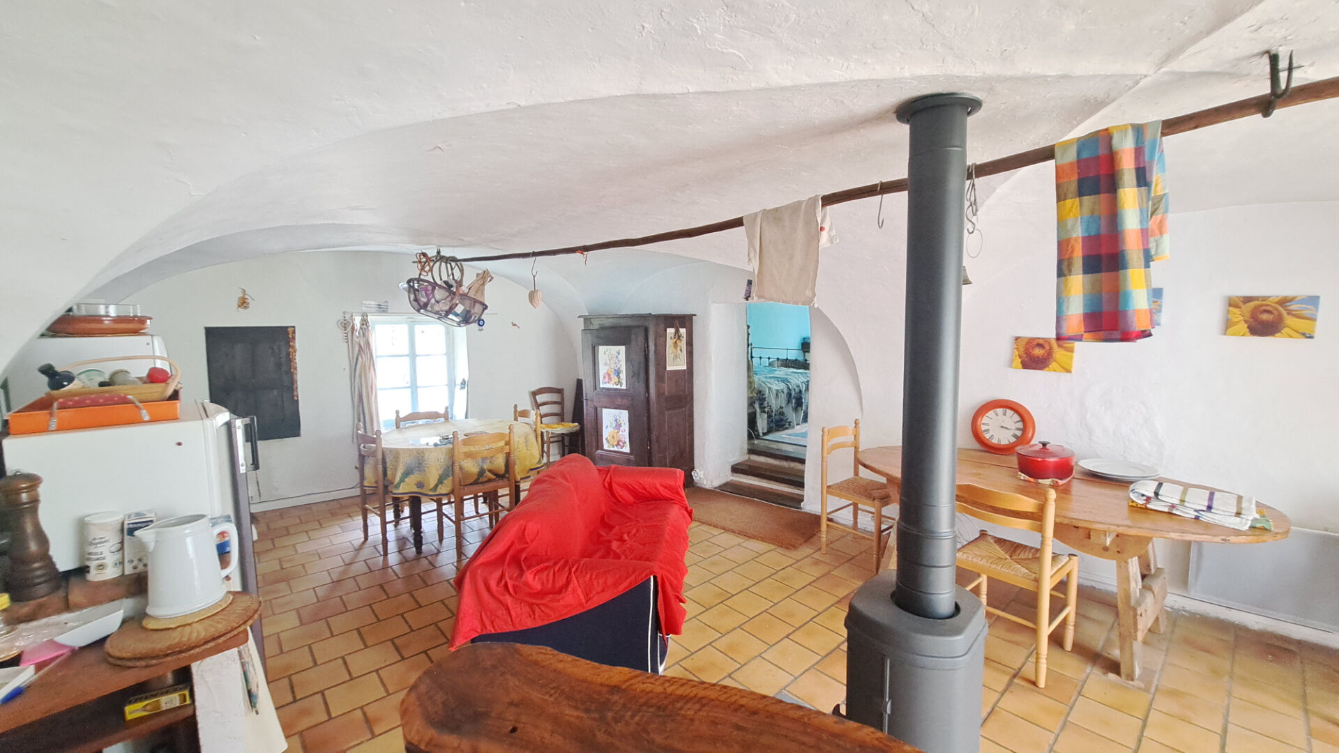 Maison de village de 95M²sur3248 de terrain avec dépendances. Composée d'une véranda, d'un séjour-cuisine, de deux chambres, d'une salle d'eau et d'un WC.