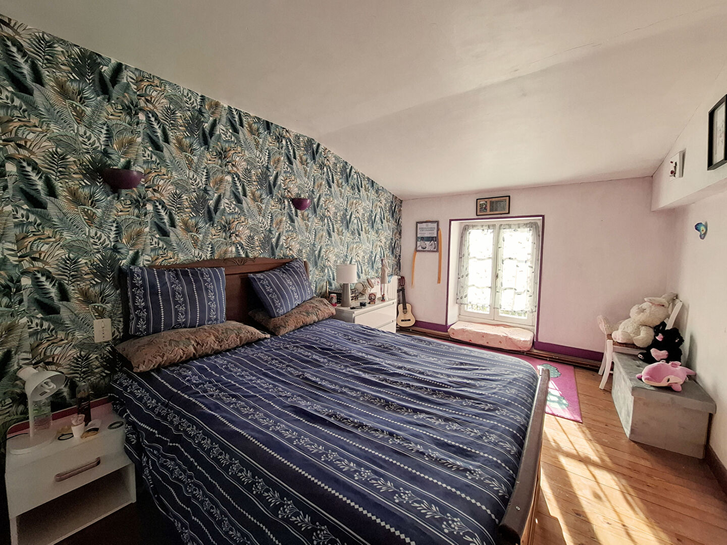 A l'étage, un grand palier dessert 3 belles chambres, et une grande salle de bains avec baignoire, douche et wc.