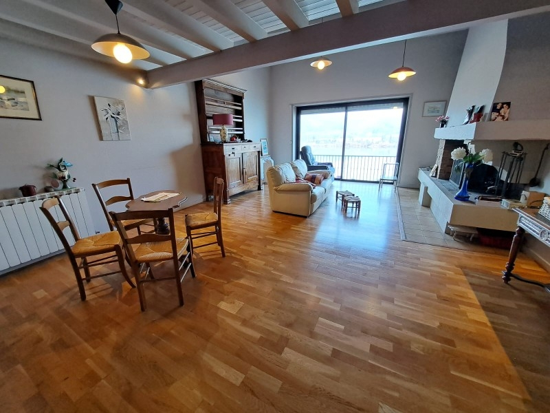 Il offre au 1er étage une cuisine indépendante, un salon-séjour lumineux ouvert sur un balcon avec une vue imprenable sur le Rhône et un wc.