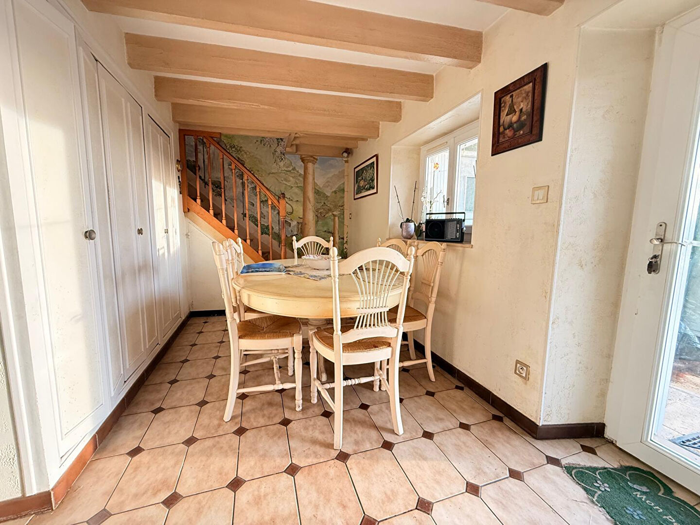 Dès l'entrée, vous découvrirez un salon-séjour lumineux offrant un espace de vie agréable et chaleureux.