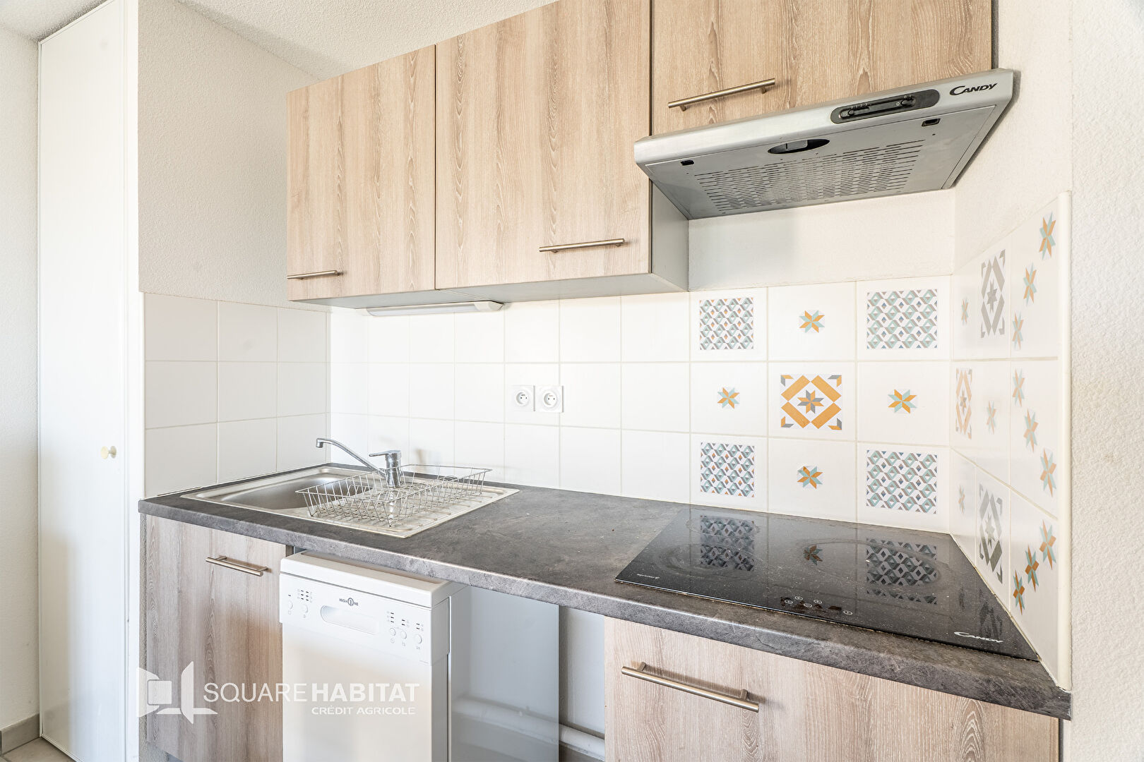 Il se compose d'une entrée qui dessert sur la droite la pièce de vie composée d'un séjour lumineux avec coin cuisine et accès à la terrasse de 18m² orienté sud-est.
