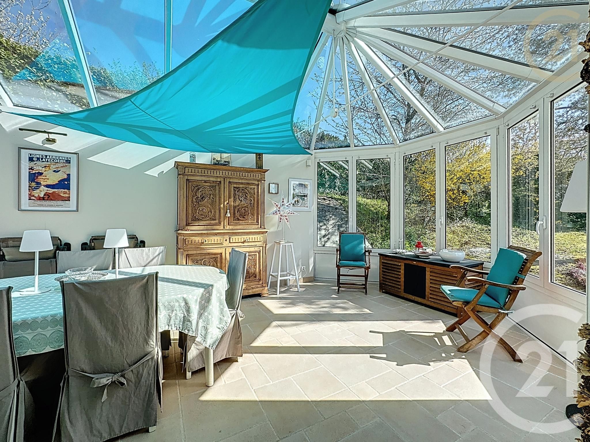 Vaste maison de neuf pièces principales, parfaitement bien entretenue, offrant en rez-de-chaussée: une entrée, un séjour traversant s'ouvrant sur la véranda, une cuisine dinatoire moderne aménagée et entièrement équipée, une chambre, une salle d'eau attenante et WC.