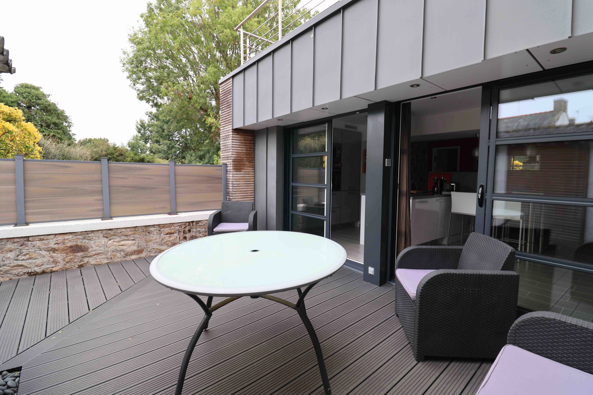 De la terrasse haute, petite vue mer sur le Golfe du Morbihan. Proche des sentiers côtiers et des promenades de bord de mer.