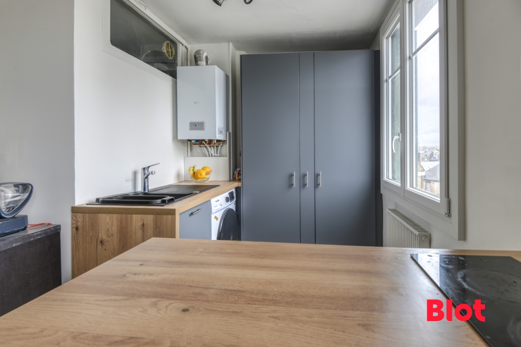 L'appartement comprend également une salle d'eau avec WC, ainsi qu'une chambre lumineuse.