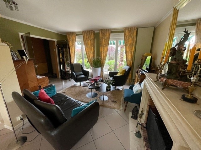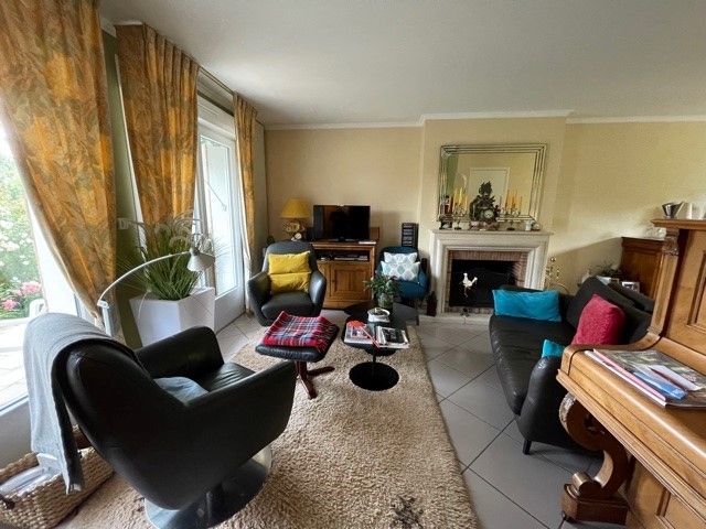 Au rdc : entrée, cuisine séparée donnant sur bow-window, un double séjour avec cheminée donnant accès sur la terrasse, 2 chambres, wc, salle de bains.