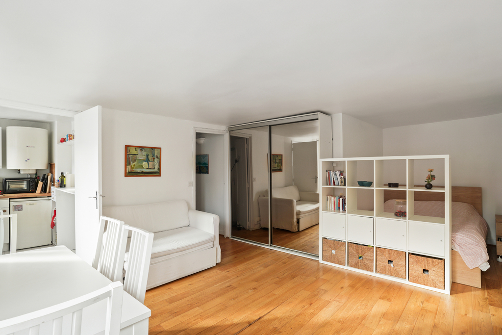Au coeur de la charmante et animée rue Saint-Dominique, au 4ème étage par escalier, joli studio de 30,58m², avec parquet, cheminée décorative, et lumineux grâce à ses trois fenêtres donnant sur la rue.
