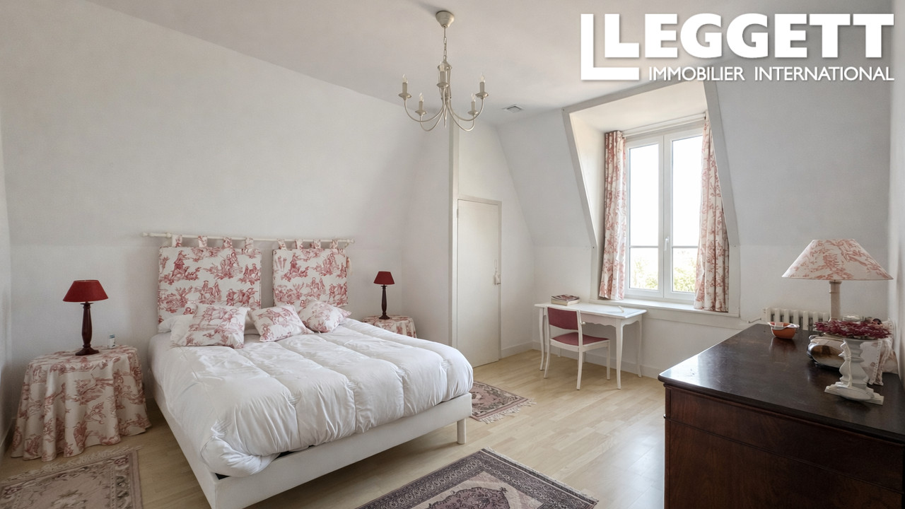 La maison principale propose au rez-de-chaussée un vestibule, un salon traversant est/ouest avec cheminée et belle hauteur sous plafond (plus de 3 m), ainsi qu'une cuisine indépendante ouvrant sur une terrasse couverte avec volet électrique et un jardin clos. Les étages accueillent six chambres, une salle de bains, une salle d'eau et deux WC.