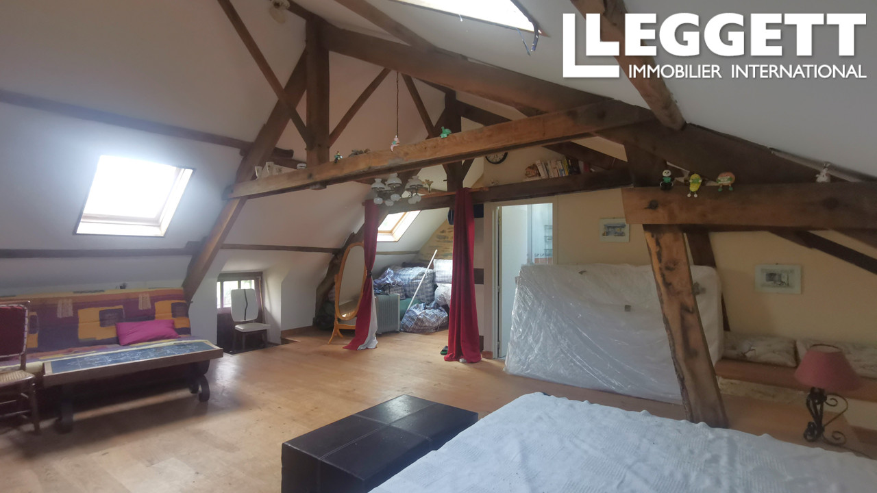 La seconde partie de la propriété est l'ancienne cave et les combles aménagés avec goût avec les poutres et les pierres apparentes. Le rdc offre un espace de vie ouvert avec cuisine, tandis que l'étage se compose actuellement d'une chambre ouverte avec une salle de bain & des toilettes sanibroyeur séparées. Donnant accès en bas au jardin, on a une petite terrasse, le jardin accessible par quelques marches.