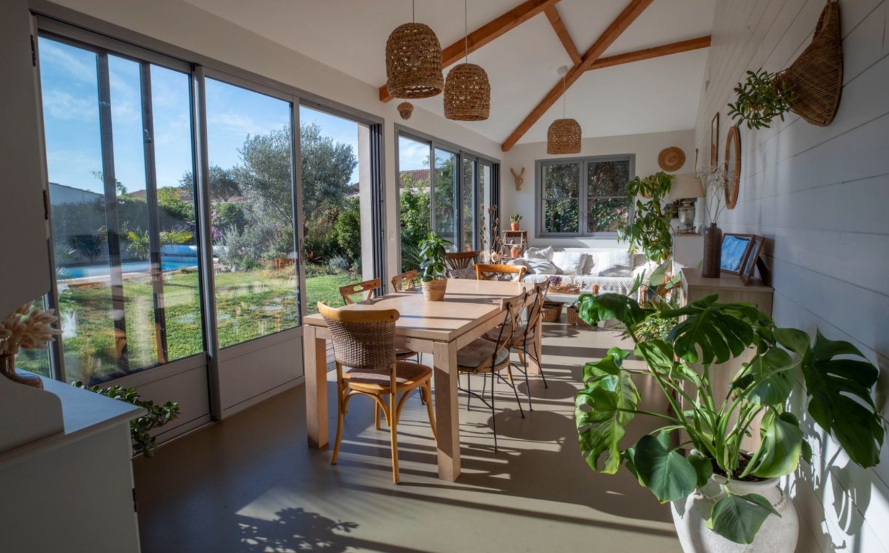 Attenant à la villa, avec entrée indépendante, un logement de plain-pied de 45 m² classé meublé de tourisme 3 étoiles, composé de deux chambres, d'une cuisine ouverte avec salon et salle à manger, d'une salle d'eau, d'un WC séparé et d'une terrasse de 25 m² sans vis-à-vis. Équipé d'une pompe à chaleur tri-split et d'un chauffe-eau thermodynamique. Idéal pour location saisonnière ou accueil familial.
