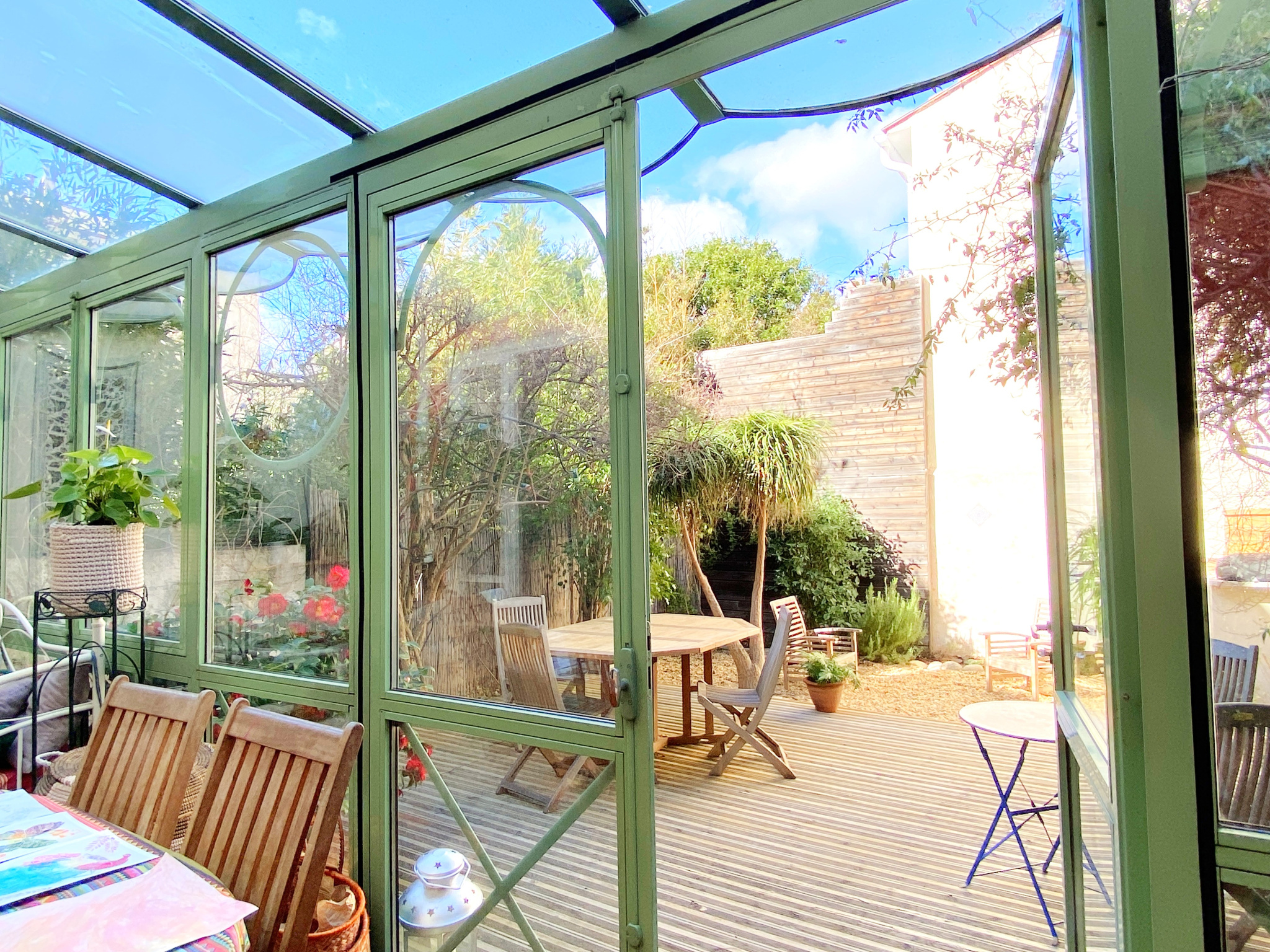 C'est un plaisir de vous présenter cette maison de ville, pleine de charme, à l'abri des regards... Au coeur de la ville, à l'abri de toute nuisance, cette élégante et charmante maison de ville développe environ 160m2 habitables, nichée dans un jardin généreux et verdoyant. L'espace de vie, aux volumes harmonieux, s'ouvre largement sur la véranda, les terrasses et le jardin, offrant une continuité naturelle entre intérieur et extérieur. Cette maison de ville, rare, conjugue avec élégance l'art de vivre citadin et la sérénité d'un véritable cocon de verdure. Le salon et sa cheminée s'ouvre sur la véranda et jardin, 3 grandes chambres à l'étage, deux salles de bains, et encore de belles possibilités d'aménagement pour créer les espaces dont vous rêvez : bureau, suite supplémentaire, salle de loisirs... Un autre atout majeur : un garage-dépendance de 50m2 au sol, en R+1, potentiel pour créer un logement ou un atelier.