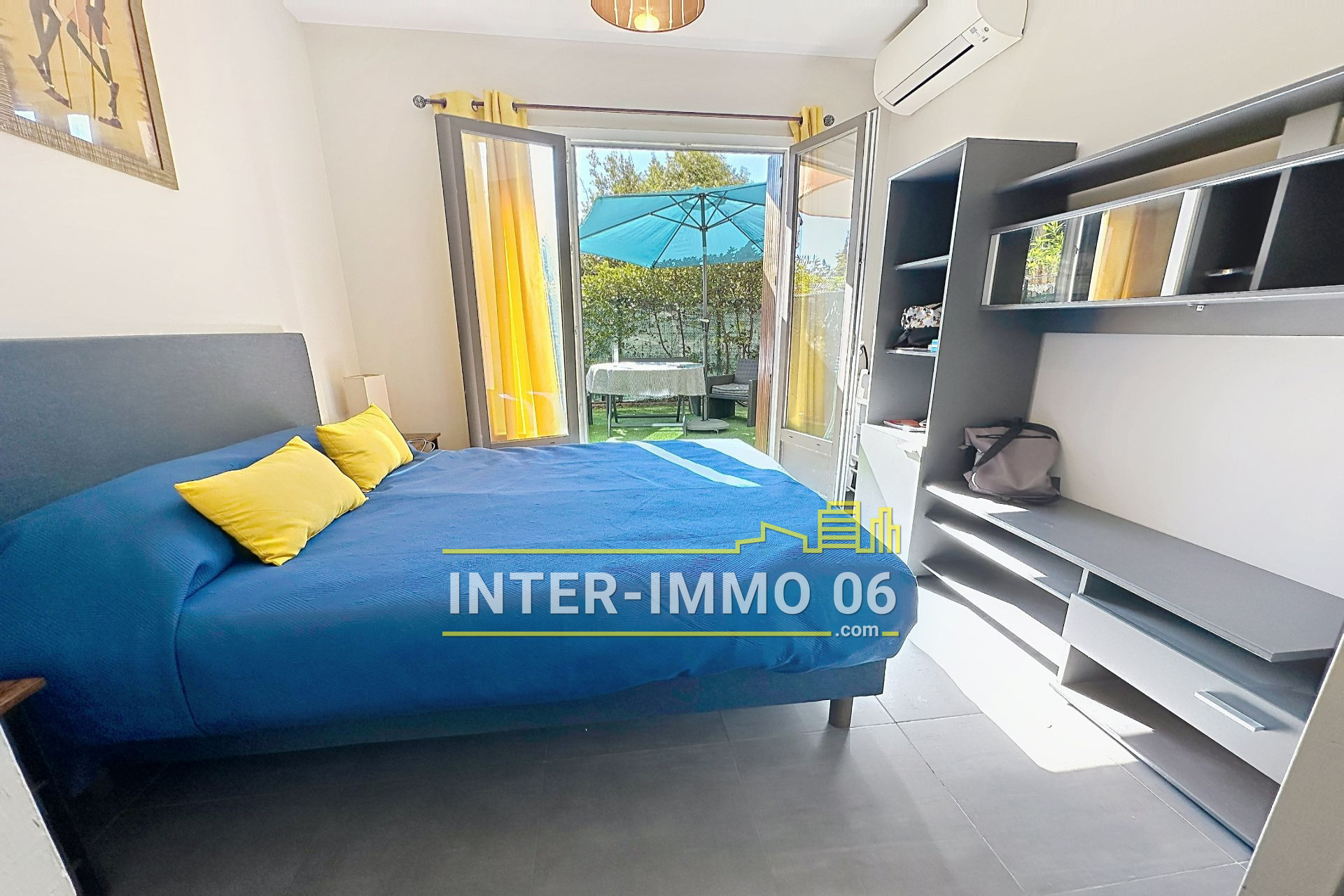 CAGNES SUR MER, Pinède, proche de la mer, des commodités et de l'hippodrome, dans une résidence bien entretenue, très beau 2 pièces de 45m² en rez de jardin entièrement rénové, séjour avec cuisine équipée, une chambre ouvrant sur jardin de 20m² en exposition ouest, salle d'eau avec wc, climatisation, double vitrage, nombreux rangements, cave, parking collectif et possibilité de parking privé en supplément.