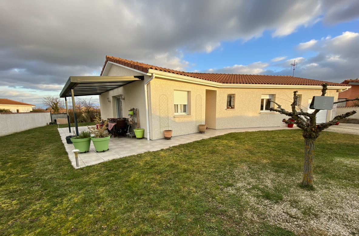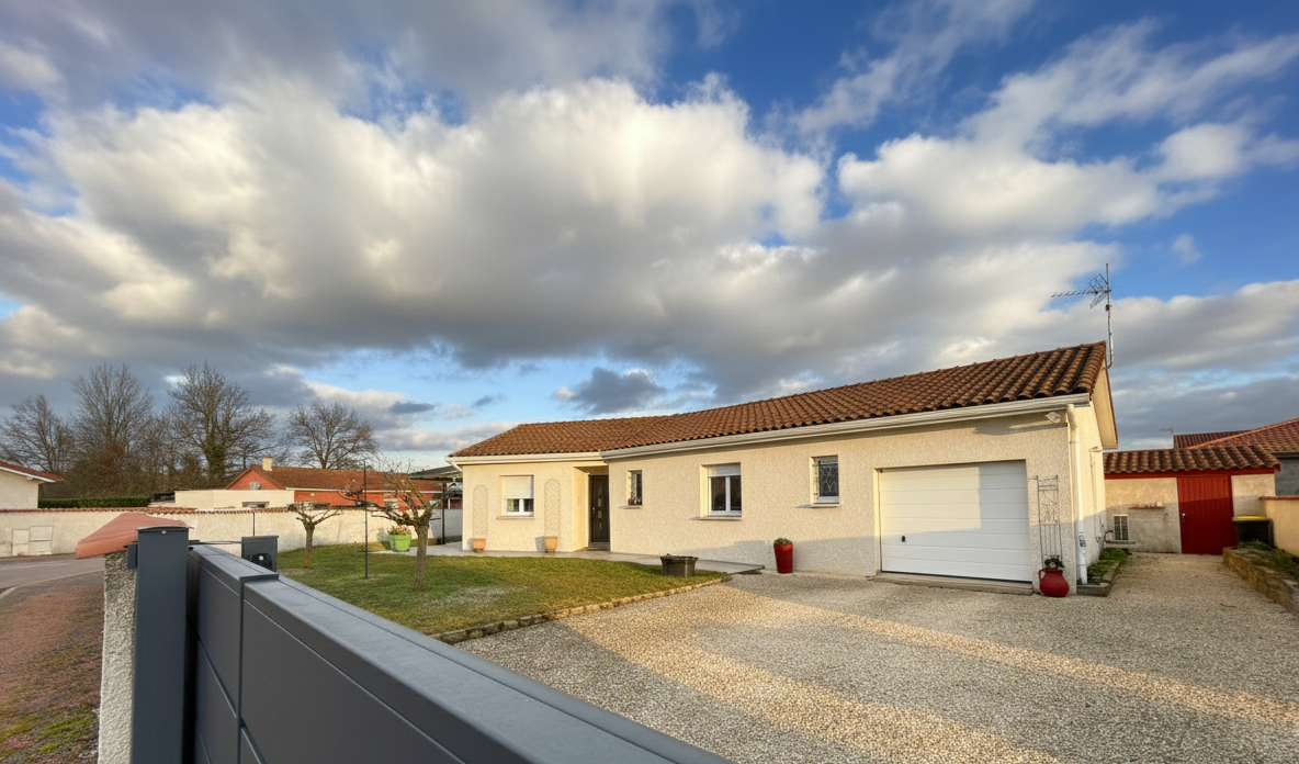Cette maison de plain-pied, construite en 2012, est édifiée sur un terrain de 553 m2 et offre un cadre de vie confortable et fonctionnel.