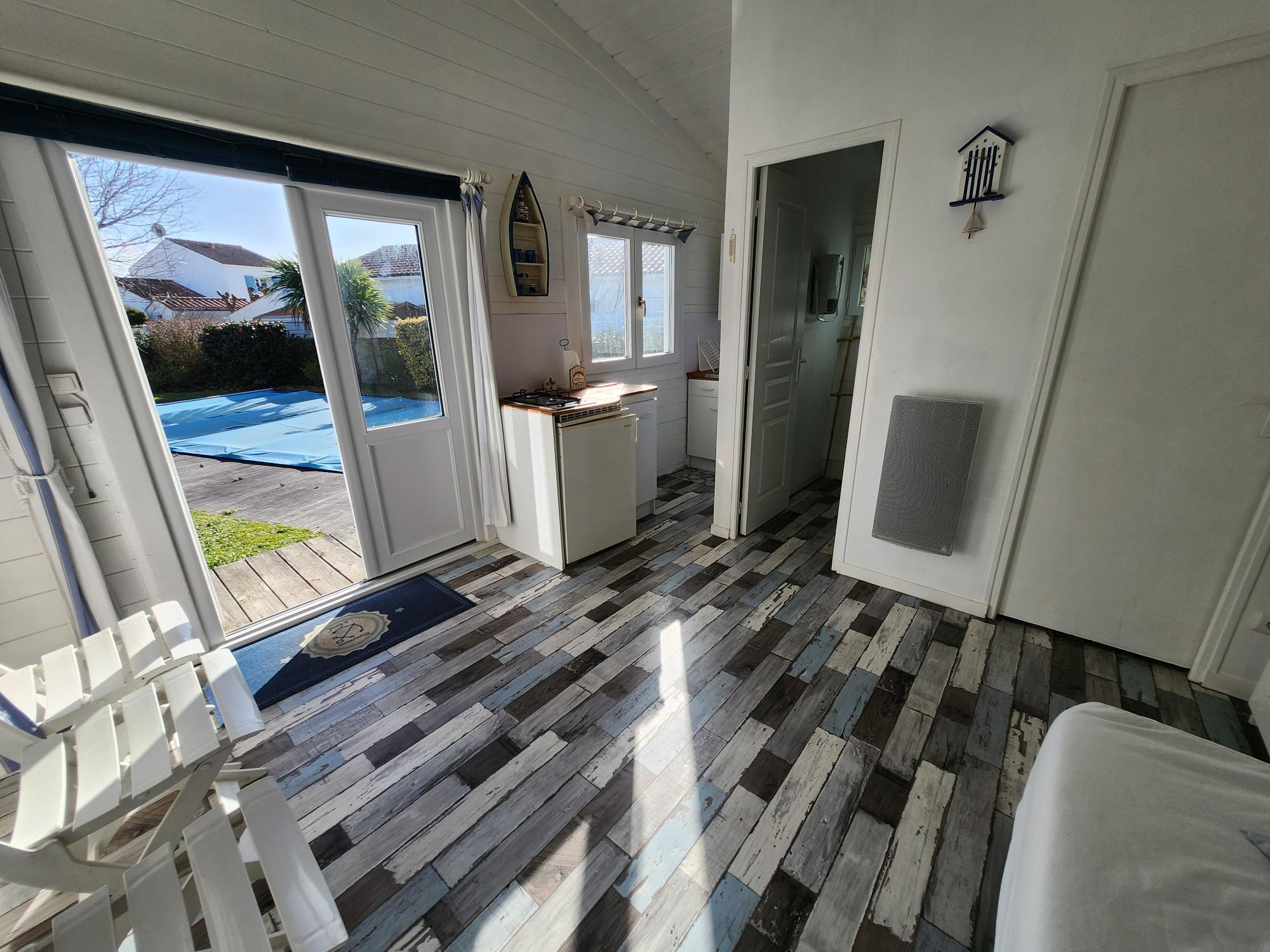 A 500 m de la plage de Boisvinet, nous proposons cette charmante villa sur un beau terrain de près de 900 m2 clos avec piscine et chalet d'été.