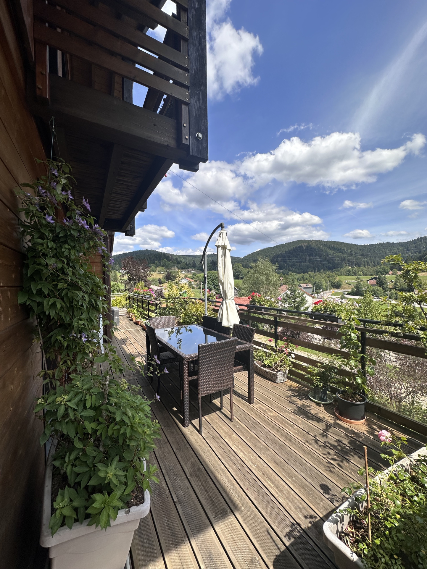 Le chalet est sublimé par un environnement paysagé. Facilité de stationnement par un parking et un carport protégeant 2 voitures.