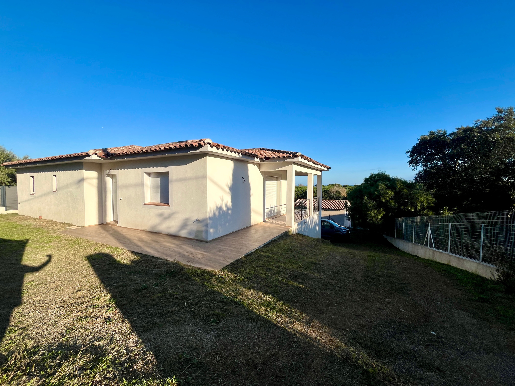 Villa contemporaire récente composée comme suit : lumineux séjour, cuisine ouverte équipée, l'ensemble ouvrant sur une grande terrasse couverte avec vue dégagée. L'espace nuit comprends : deux chambres, salle de bains, wc indépendant, pièce de rangements. Au rez de chaussée : une chambre avec salle de bains et dressing, un bureau ouvert, pièce à aménager. Piscine. Volets roulants électriques, climatisation réversible.