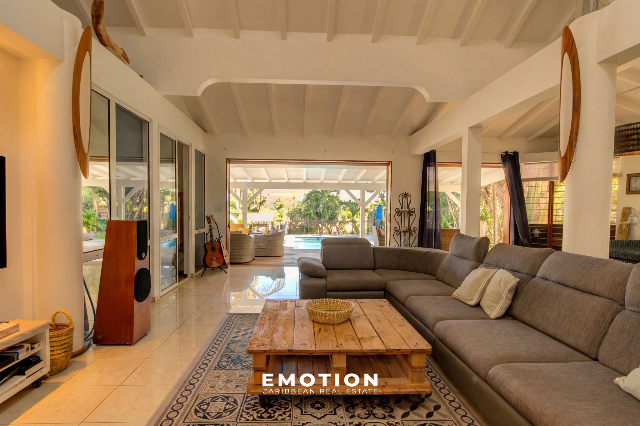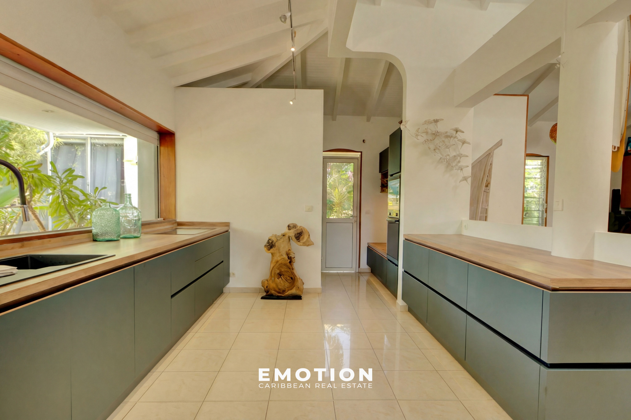 Le cabinet Emotion vous propose à la vente, à l'abri des risques de submersion, dans un environnement calme et sécurisé par un portail, une maison de prestige nichée au coeur d'un jardin tropical, sur le secteur prisé du Helleux, à seulement cinq minutes à pied de la plage et du spot de surf du Helleux, à proximité immédiate de Saint-François et à dix minutes du bourg de Sainte-Anne.