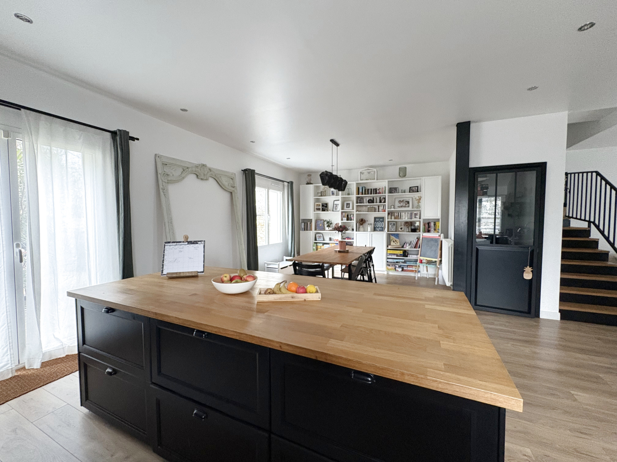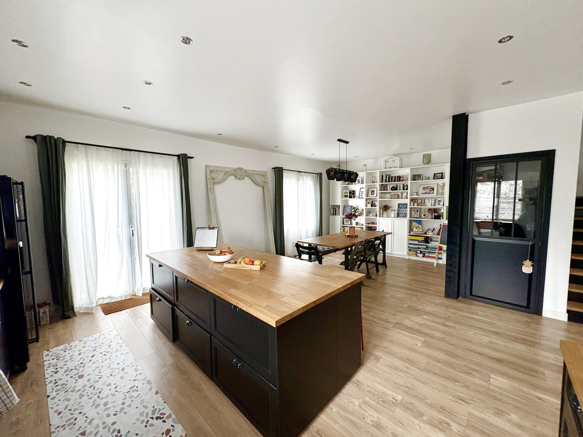 Dès l'entrée, vous serez séduit par une superbe pièce de vie de plus de 50 m2, bénéficiant d'une magnifique hauteur sous plafond d'environ 3 mètres. La cuisine ouverte, entièrement équipée, s'intègre harmonieusement à l'espace et le séjour offre un accès direct à la terrasse et au jardin.