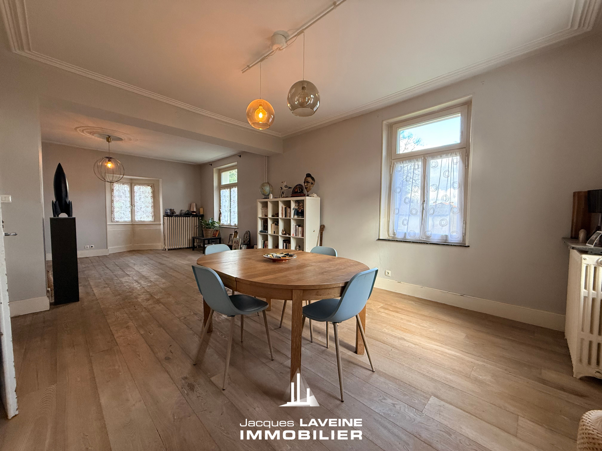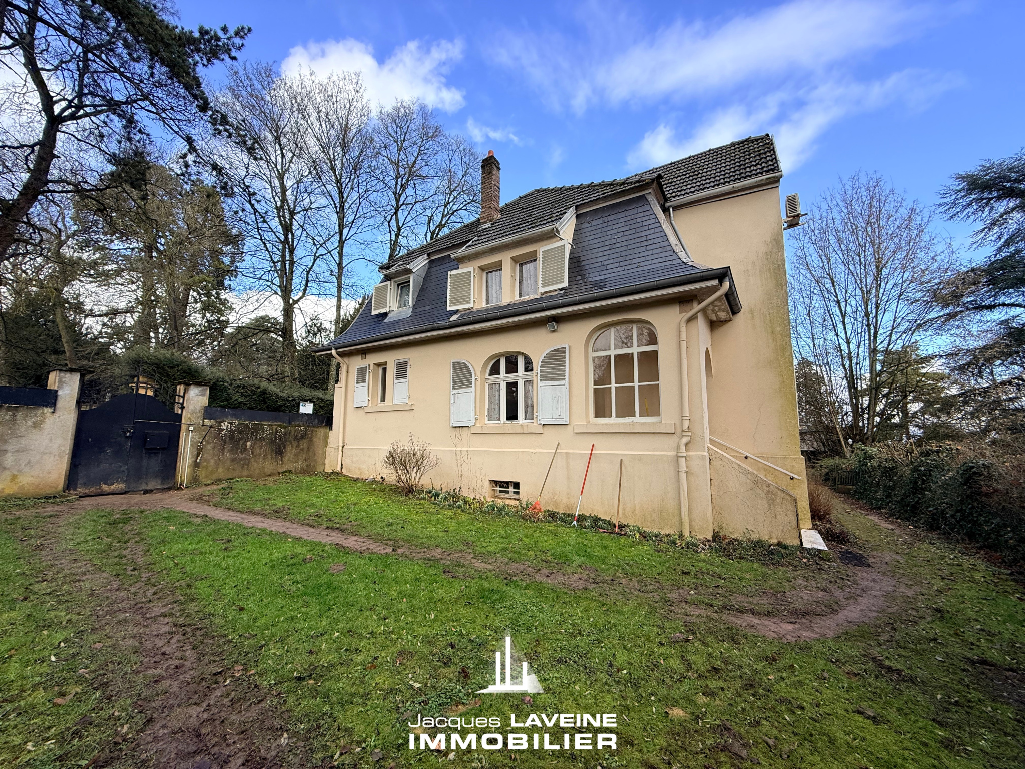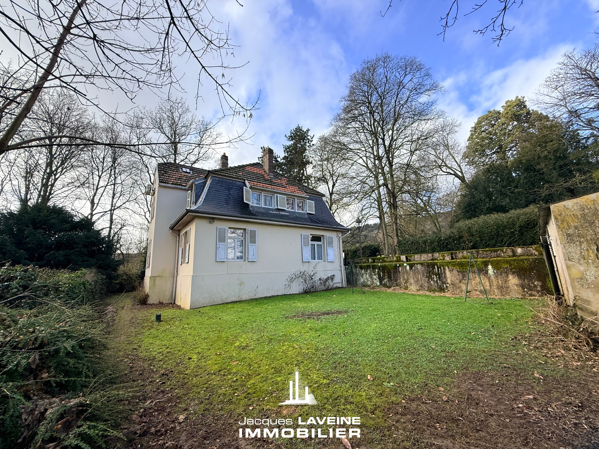 EXCLUSIVITÉ JLI! Au calme, à proximité immédiate des écoles, de la mairie et des transports, dans un cadre verdoyant, belle maison individuelle du début du XXo siècle de 165m2 habitables, comprenant au rdc un spacieux salon-séjour de 43m2, une cuisine équipée, un bureau, des toilettes, à l'étage, un dégagement, 4 chambres, une salle de bains-wc, combles aménagés au dessus. Caves. Jardin clos de + de 5ares, dépendance, chauffage central par pompe à chaleur. Charme et caractère.