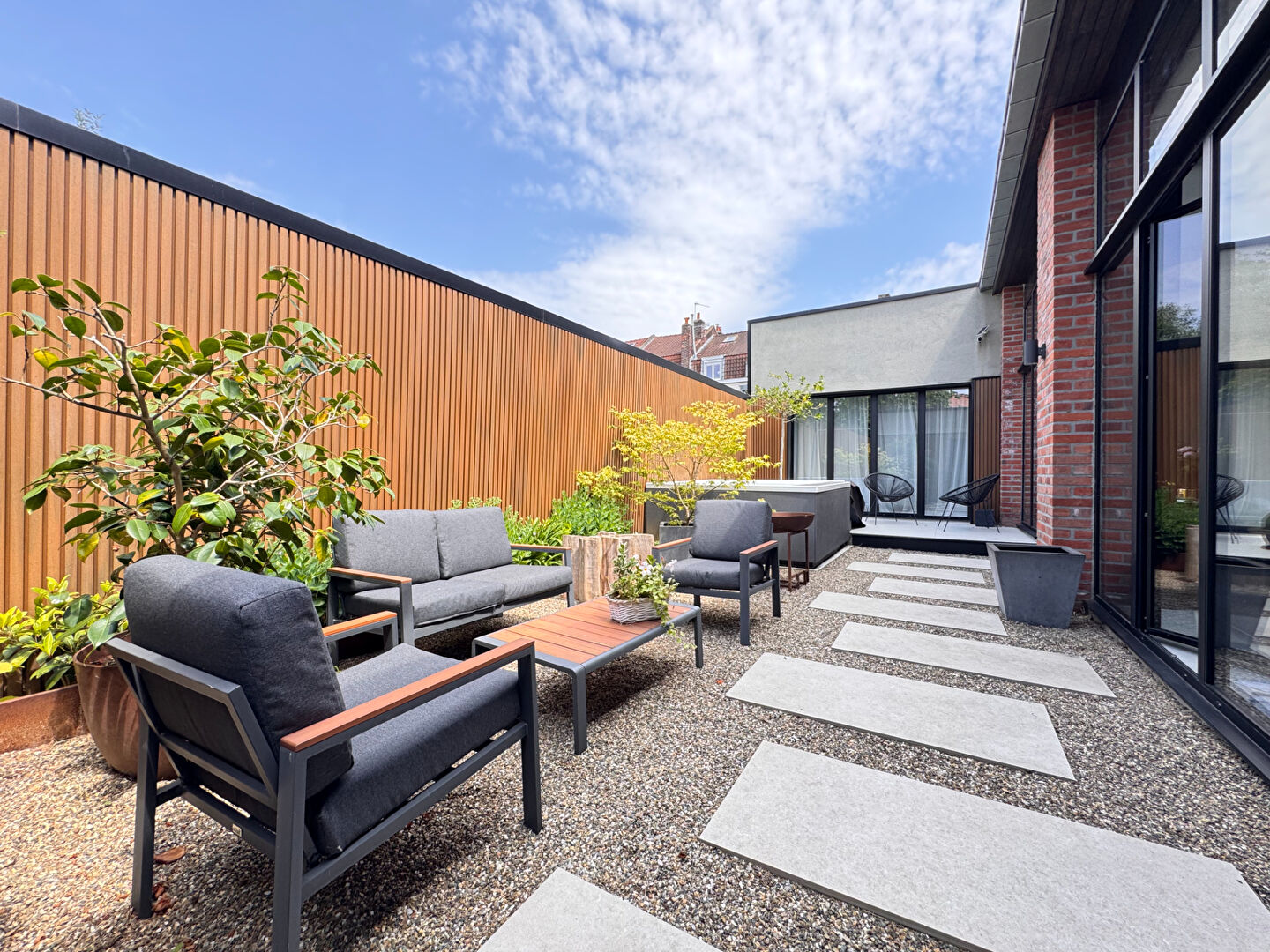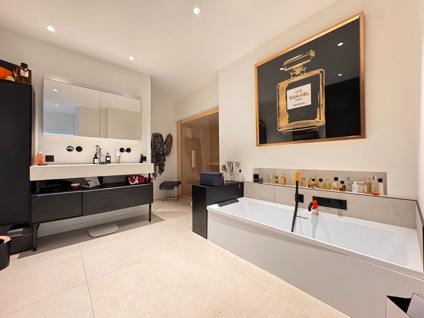 Dès l'entrée, un spectaculaire couloir galerie baigné de lumière donne le ton et dessert un espace de vie : salon élégant avec cheminée, volumes impressionnants et une cuisine au design contemporain, entièrement équipée, ouverte sur les espaces de réception. L'ensemble profite d'une luminosité traversante grâce à de larges baies vitrées de part et d'autre, sans aucun vis-à-vis, au calme absolu. Le rez-de-chaussée accueille également une superbe suite parentale avec salle de bain privative intégrant un sauna. À l'étage, trois chambres et deux salles de bains. Deux extérieurs intimistes avec un jacuzzi, sans entretien, prolongent harmonieusement la maison. Un garage et la possibilité de stationner jusqu'à trois véhicules viennent parfaire ce bien rare, où tout est neuf, entièrement repensé et prêt à vivre. Une maison sublime, confidentielle, pour amateurs de volumes, de lumière et de prestations haut de gamme.