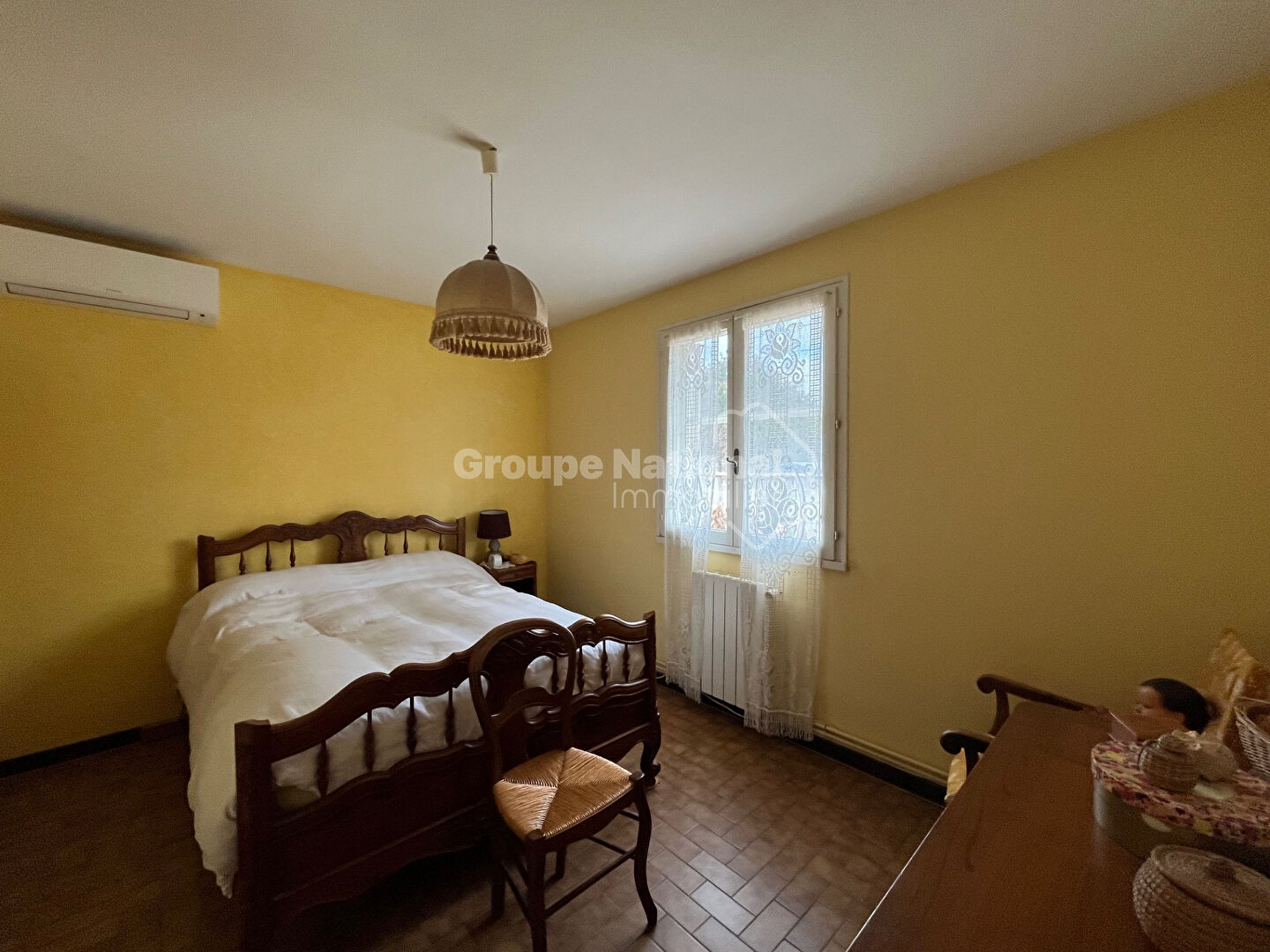 À l'étage, deux chambres et une pièce traversante à aménager selon vos projets. Chauffage central au gaz de ville et climatisation réversible.