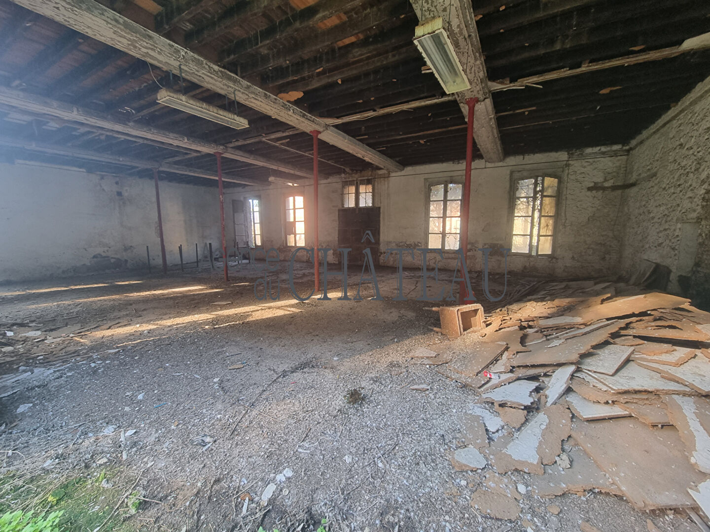 Bâtiment d'environ 500 m² au sol, développé sur trois niveaux, à rénover intégralement.