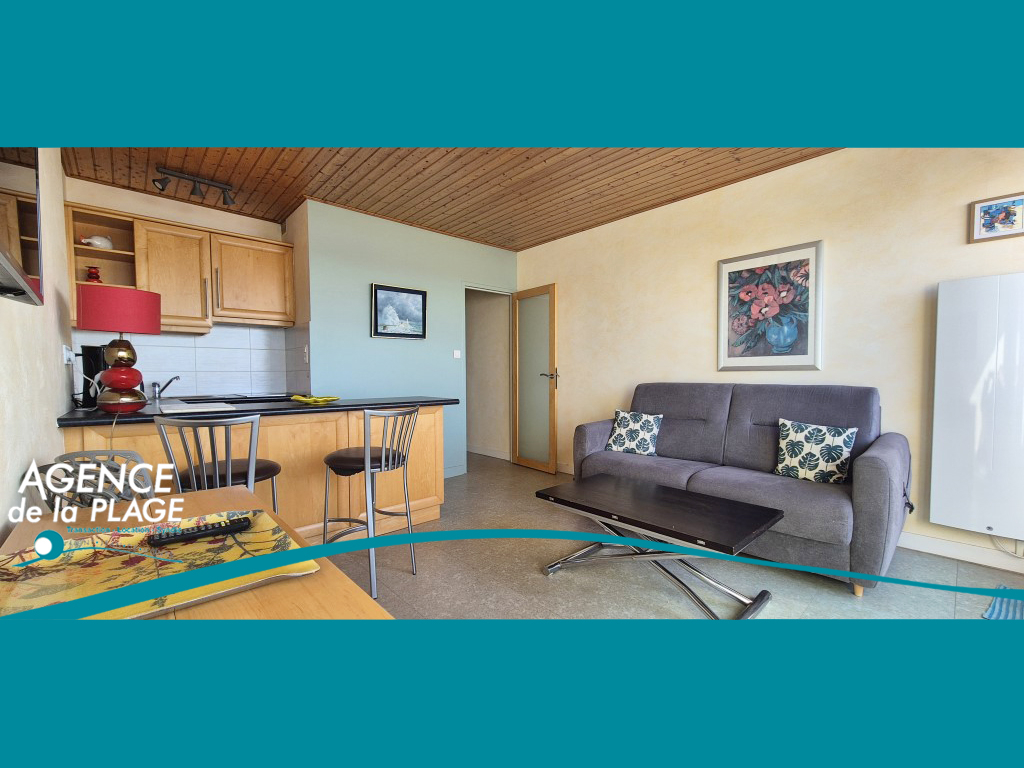 Entrée, pièce de vie avec cuisine ouverte aménagée et équipée bénéficiant d'une superbe vue sur l'océan et l'estacade, chambre, salle d'eau, wc suspendu, débarras.