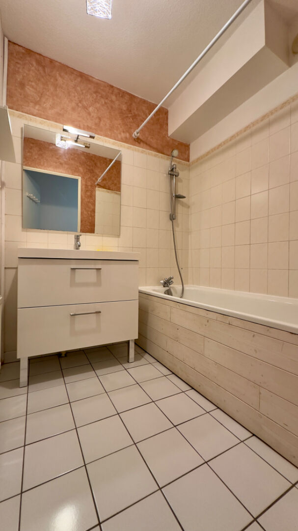 En bon état, il est composé d'une entrée avec placard de rangement, un séjour de 20 m² semi ouvert sur une cuisine aménagée et équipée, une terrasse avec double exposition, une salle de bains, WC séparé et une chambre avec placard.