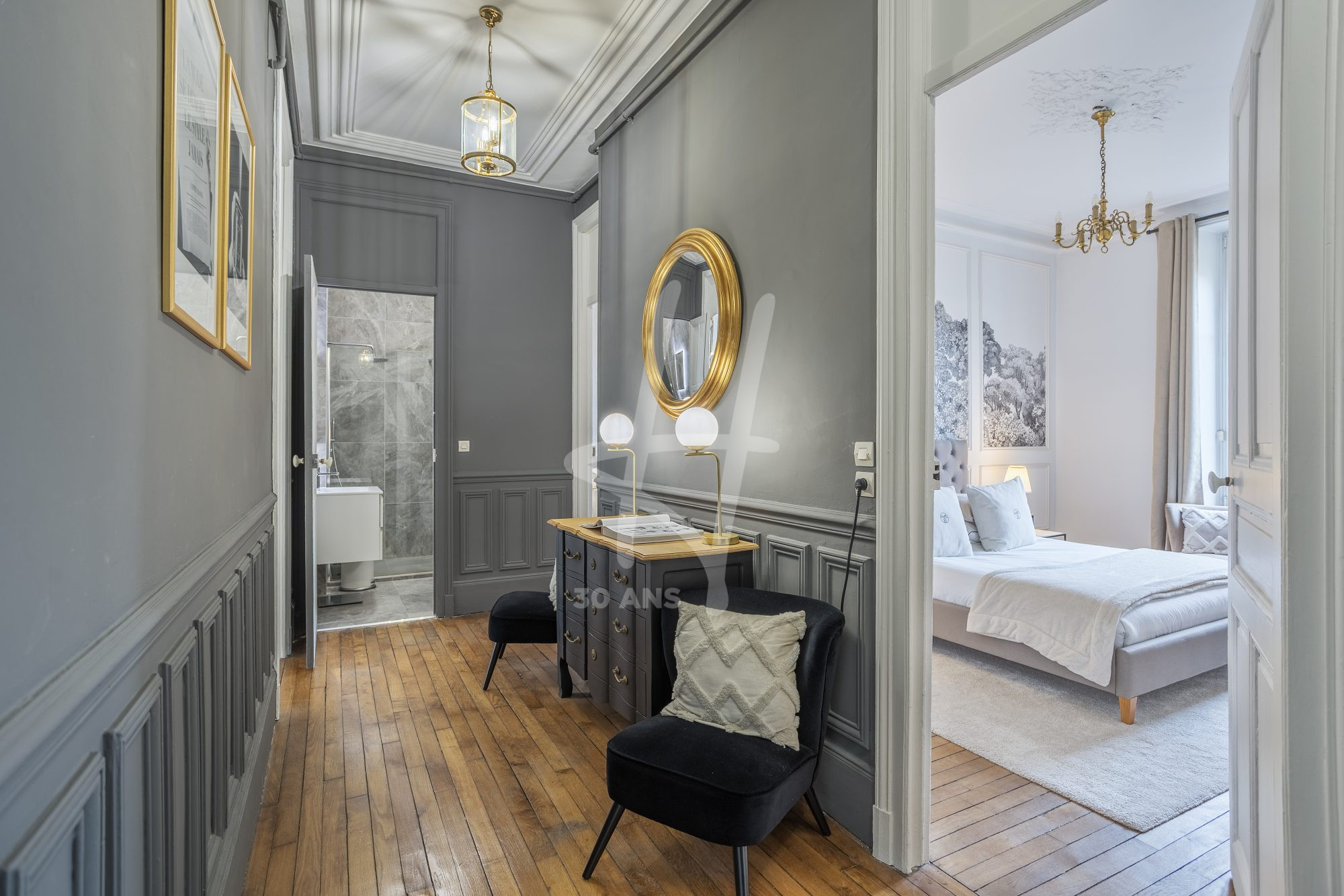 Dans un immeuble de caractère donnant directement sur le parc Charles III, à seulement 10 minutes à pied de la place Stanislas et du centre-ville, venez découvrir ce superbe appartement bourgeois de 106 m², situé en rez-de-chaussée surélevé.