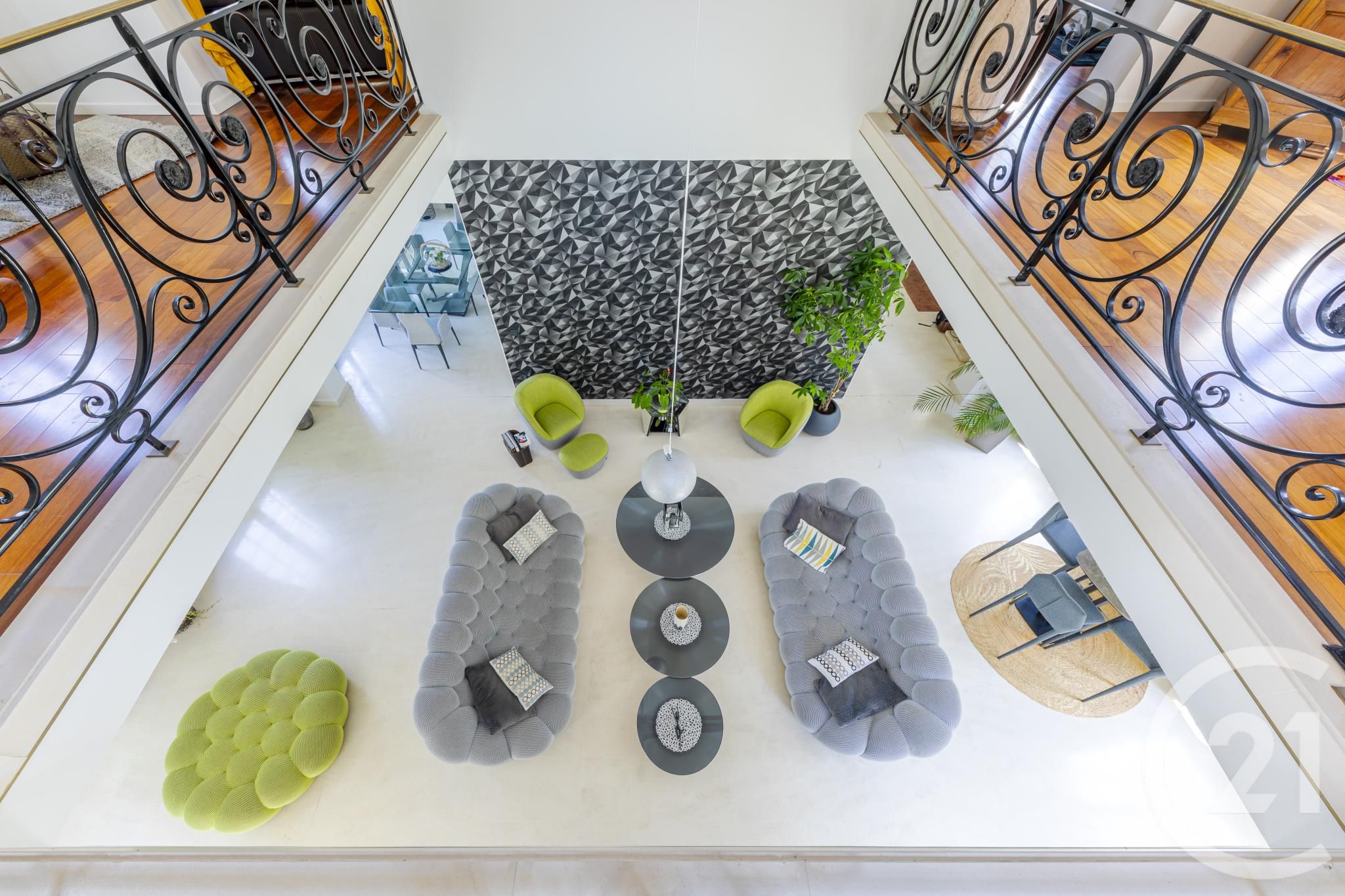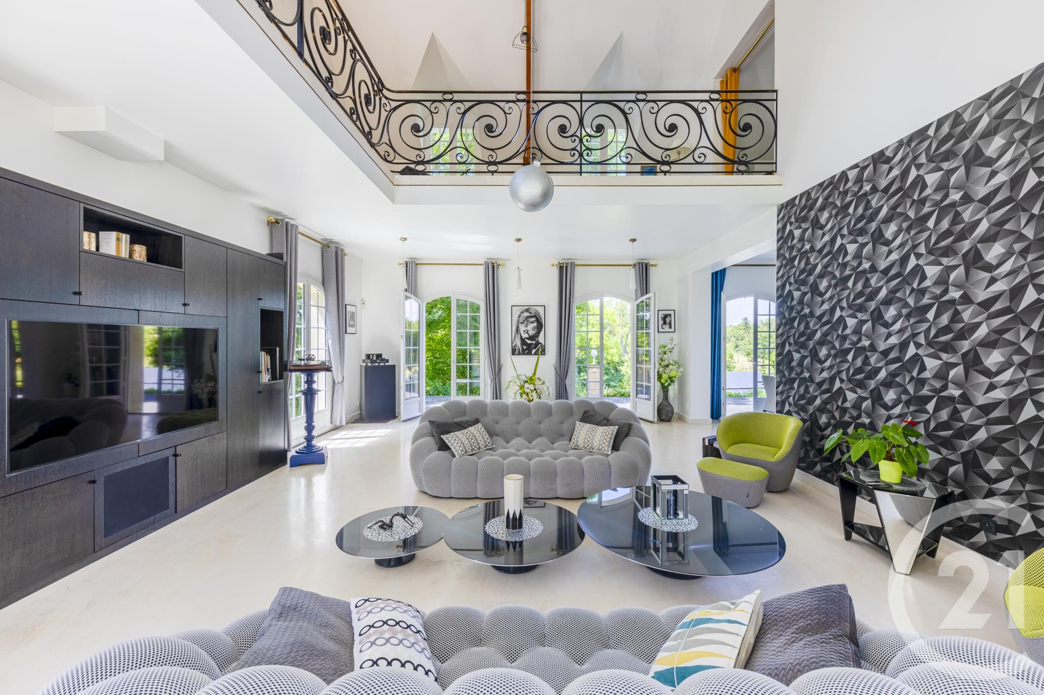 Au rez-de-chaussée : Hall d'entrée majestueux, superbe séjour cathédrale de plus de 50 m² baigné de lumière, salon / salle à manger chaleureux, cuisine indépendante aménagée et équipée, ainsi qu'une chambre de plain-pied avec salle d'eau, baignoire et WC privatifs.