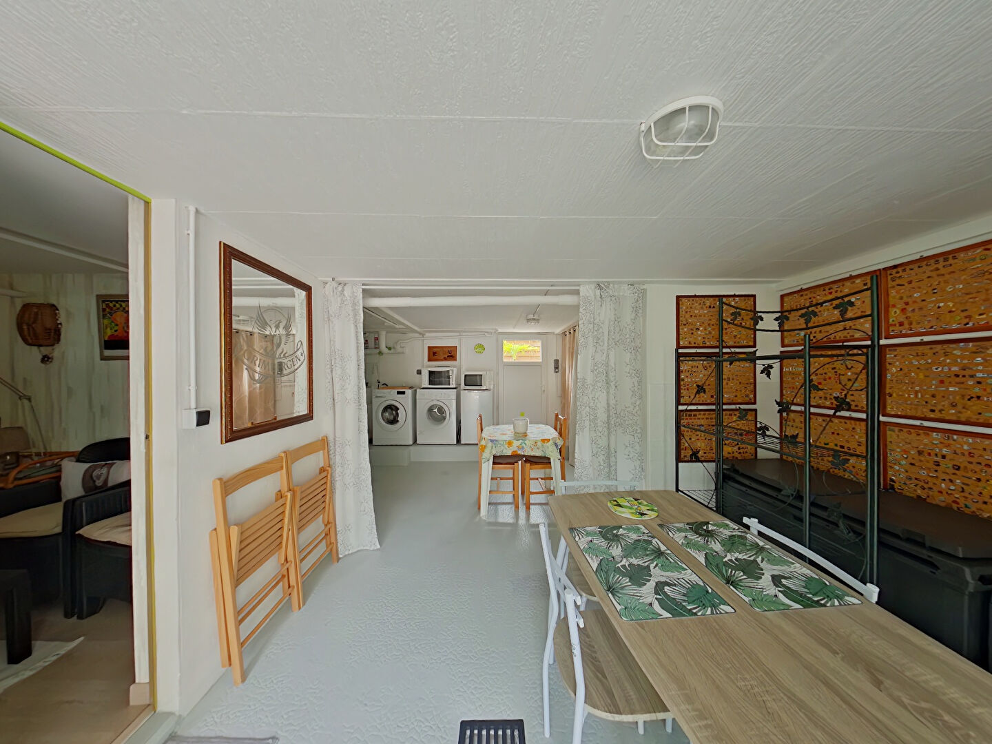 Le sous-sol a été réaménagé, la porte de garage remplacée par une baie vitrée s'ouvre sur un bel espace avec coin buanderie et distribue une grande chambre avec accès à une salle d'eau et WC.