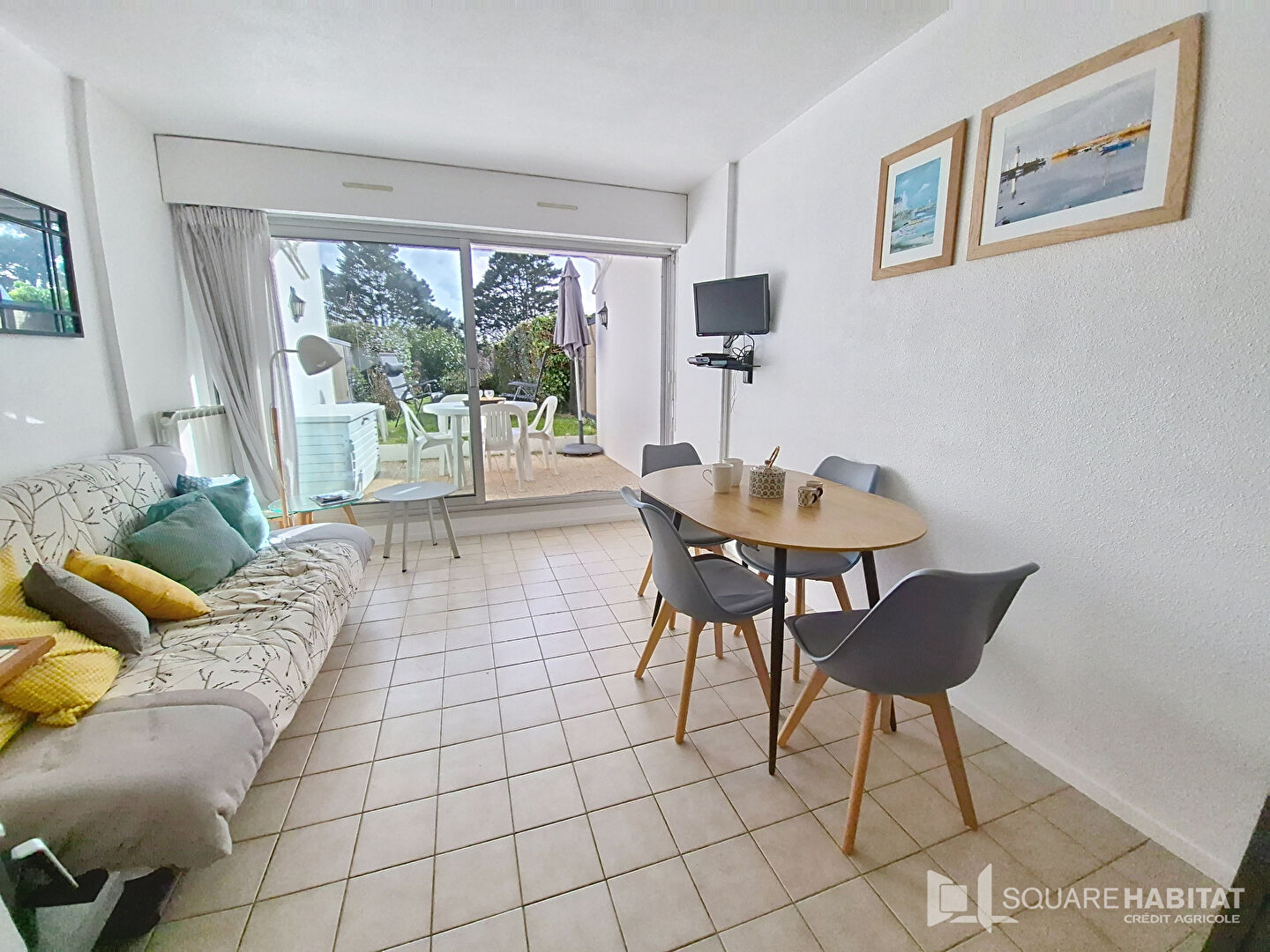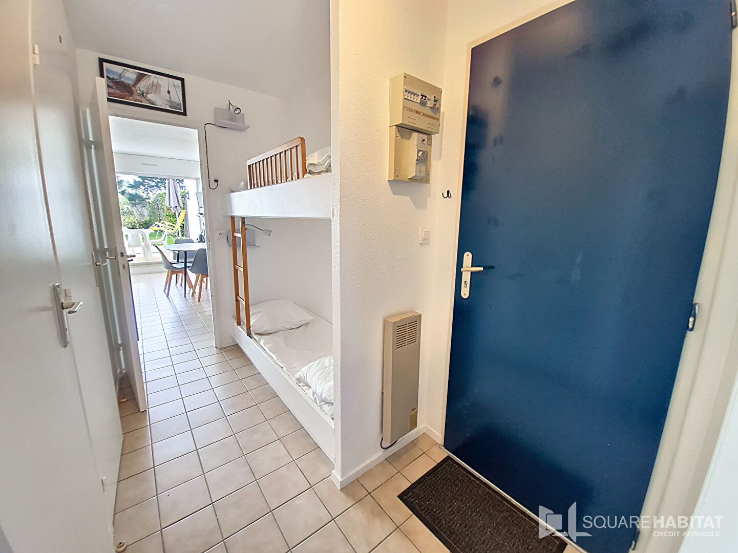 QUIBERON, Entre Port-Haliguen et le centre ville, dans une belle résidence ravalement date de 2025, agréable 2 pièces d'environ 30m² composé d'une entrée avec lits à étage et placard, une chambre avec placard coulissant, des toilettes séparées, salle d'eau, un salon-séjour avec cuisine ouverte.