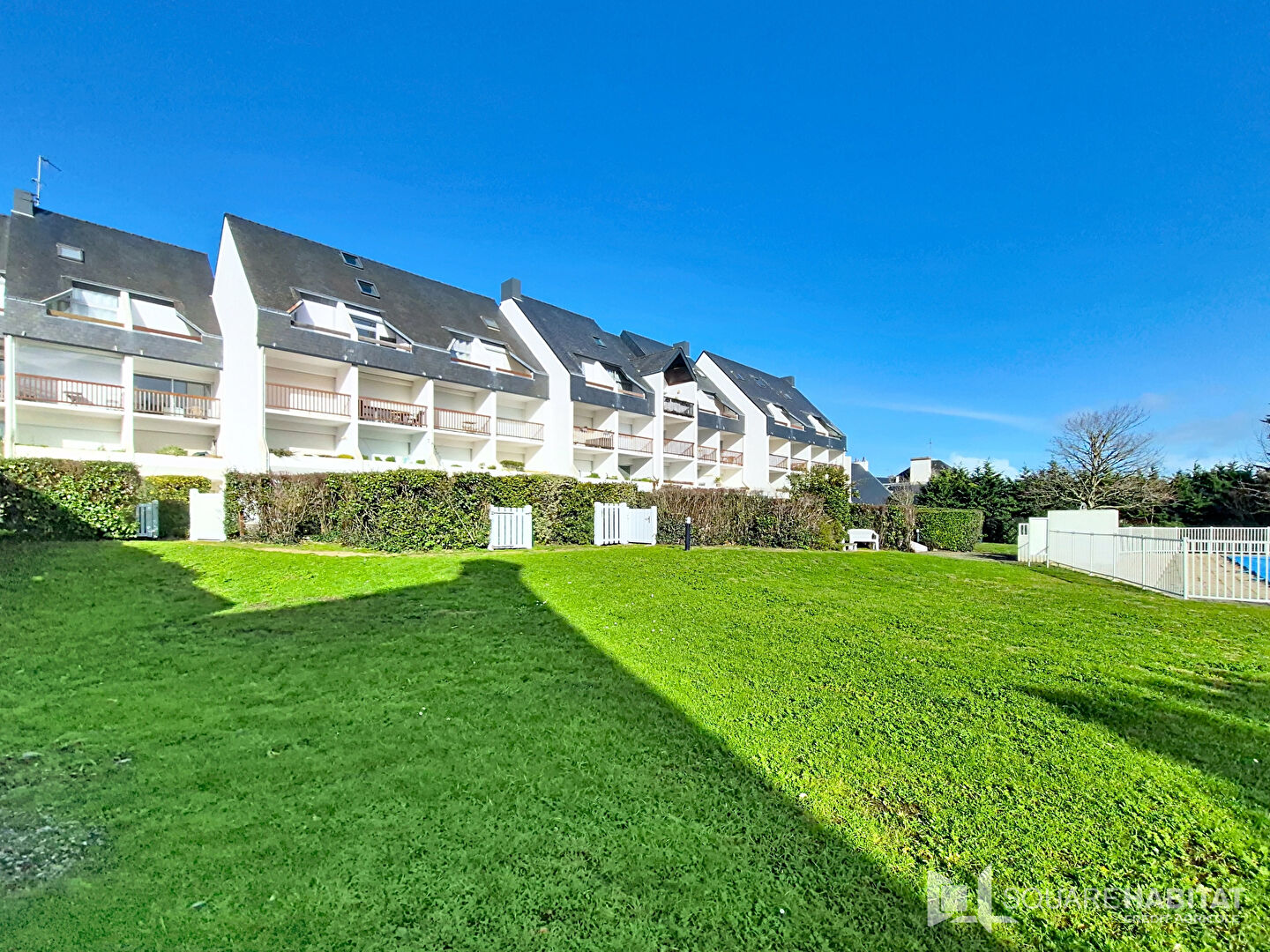 Vous pourrez apprécier la terrasse exposée sud et le jardinet par lequel un portillon vous donnera accès à la piscine et au cours de tennis.
