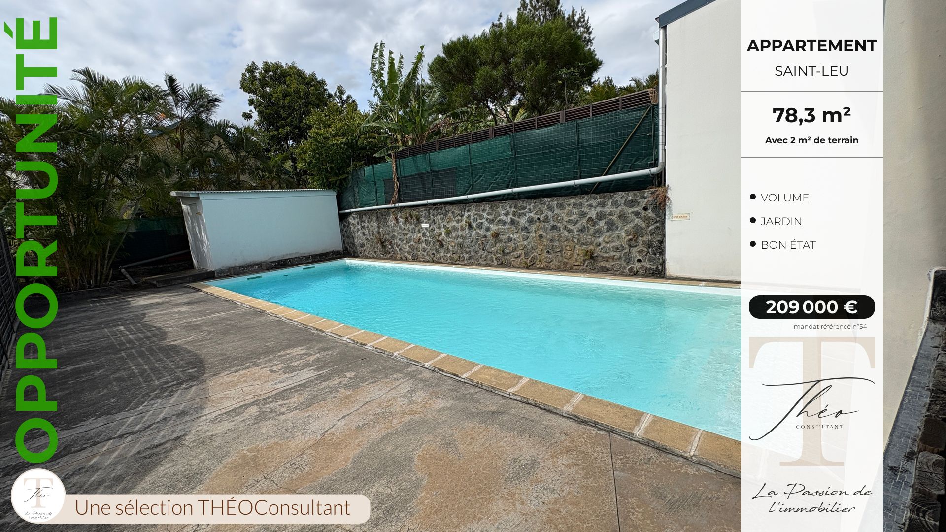 Pour un duplex avec jardin, piscine collective et petit local sportif, câ??est un positionnement rare à Piton Saint-Leu et ses environs.