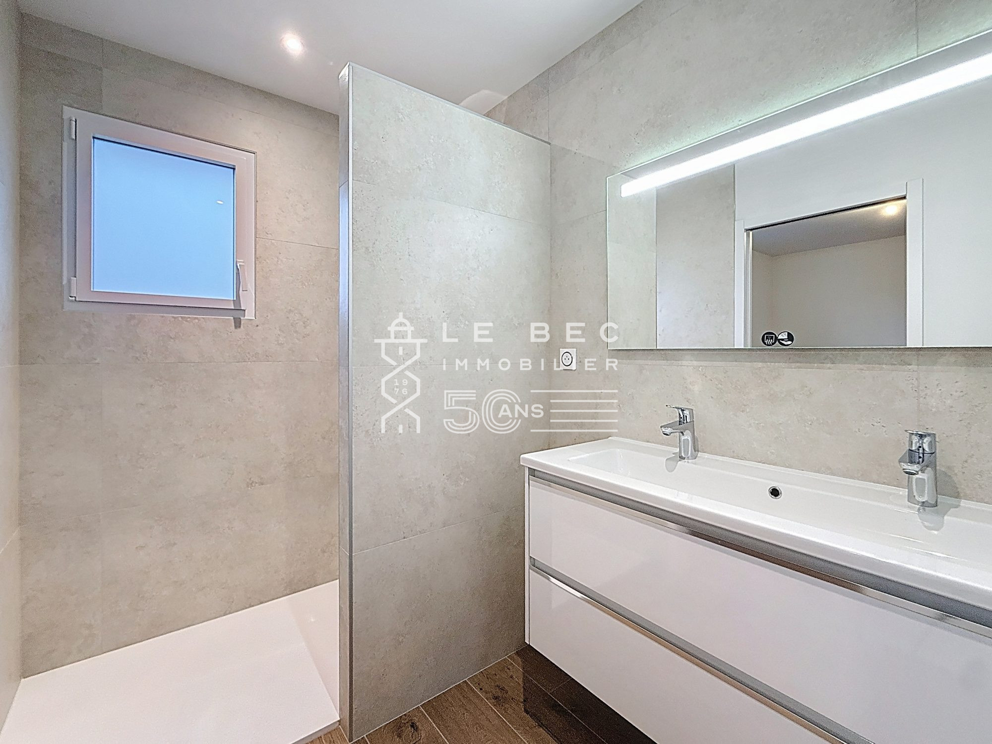 Elle se compose au rez-de-chaussée d'une entrée, d'une belle pièce de vie lumineuse exposée sud-est avec cuisine aménagée et équipée, d'un cellier donnant accès au garage avec borne de recharge pour véhicule électrique, d'un WC avec lave-mains, ainsi que d'une suite parentale avec salle d'eau.