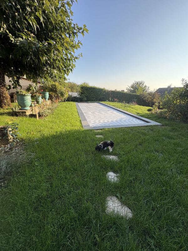 L'extérieur est resté dans le charme d'antan avec son jardin joliment arboré agrémenté d'une piscine.