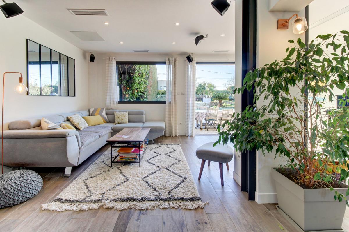 Cet espace communique naturellement avec la terrasse, et sa cuisine d'été, prolongée par le jardin arboré (oliviers, mûriers et autres arbres fruitiers).